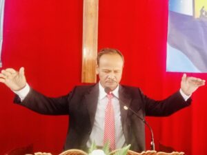 Mục sư A Viết, Quản nhiệm Hội thánh Đăk Lây cầu nguyện dâng hiến