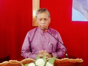 Mục sư A Héo, Ủy viên Mục vụ khu vực Bắc Kon Tum cầu nguyện chúc phước.