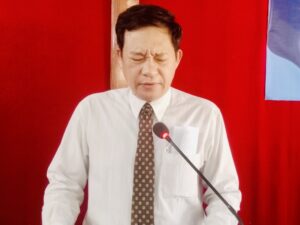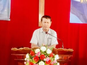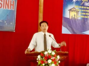 Mục sư A Tùng, Trưởng Ban Hiệp nguyện khu 9 tri ân khách mời và quý tôi con Chúa.