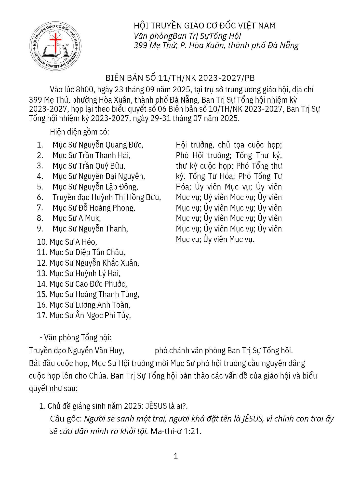 Home Thông báo Biên Bản Số 11 TH/NK 2023-2027Thông báoBiên Bản Số 11 TH/NK 2023-2027By Ban Biên Tập - 6 October, 20251830FacebookTwitterPinterestWhatsApp RELATED ARTICLESMORE FROM AUTHOR Thông báoThư Kêu Gọi Hướng Lòng Về Miền Bắc Trong Thiên Tai Bão Lụt Thông báoBiên Bản Số 10 TH/NK 2023-2027 Thông báoThông Báo Lễ Tang Bà Quả Phụ Mục Sư Đỗ Thành SơnLEAVE A REPLY Cancel replyPlease enter your comment! Please enter your name here You have entered an incorrect email address!Please enter your email address here Save my name, email, and website in this browser for the next time I comment. Mạng xã hội22,952FansLike3,912FollowersFollow0SubscribersSubscribeBài viết mớiNhững Ngày Tháng Tươi Đẹp | Oneway Radio – Tĩnh Nguyện... Tĩnh Nguyện Hằng Ngày 8 March, 2023Tình Yêu Cao Vời | Oneway Radio – Tĩnh Nguyện Hằng... Tĩnh Nguyện Hằng Ngày 14 February, 2024Đức Tin Của Chính Bạn | Oneway Radio – Tĩnh Nguyện... Tĩnh Nguyện Hằng Ngày 11 September, 2024Đức Tin Diệu Kỳ | Oneway Radio – Tĩnh Nguyện Hằng... Tĩnh Nguyện Hằng Ngày 2 March, 2025Tin tức mớiBạn đã trang bị cho cuộc chiến chưa? | Oneway Radio... Tĩnh Nguyện Hằng Ngày 29 October, 2024Bước Đi Trong Ánh Sáng | Oneway Radio – Tĩnh Nguyện... Tĩnh Nguyện Hằng Ngày 10 November, 2023Chương Trình Bồi Linh & Hiệp Nguyện Khu Vực Phía Nam... Tin tức 17 November, 2023Chờ Đợi Rồi Sẽ Hạnh Phúc | Oneway Radio – Tĩnh... Tĩnh Nguyện Hằng Ngày 3 September, 2023