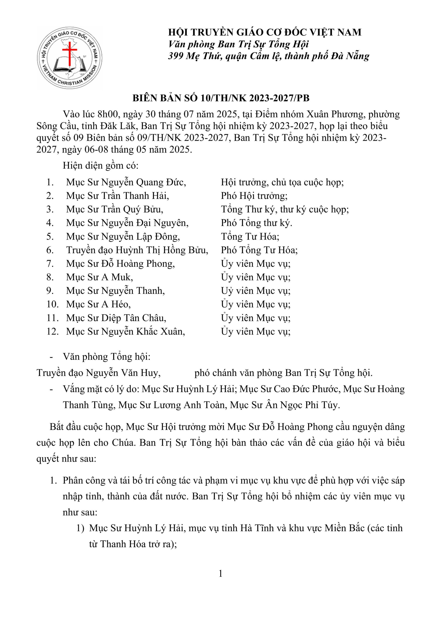 Home Thông báo Biên Bản Số 10 TH/NK 2023-2027Thông báoBiên Bản Số 10 TH/NK 2023-2027By Ban Biên Tập - 10 August, 20253110FacebookTwitterPinterestWhatsApp RELATED ARTICLESMORE FROM AUTHOR Thông báoThư Kêu Gọi Hướng Lòng Về Miền Bắc Trong Thiên Tai Bão Lụt Thông báoBiên Bản Số 11 TH/NK 2023-2027 Thông báoThông Báo Lễ Tang Bà Quả Phụ Mục Sư Đỗ Thành SơnLEAVE A REPLY Cancel replyPlease enter your comment! Please enter your name here You have entered an incorrect email address!Please enter your email address here Save my name, email, and website in this browser for the next time I comment. Mạng xã hội22,952FansLike3,912FollowersFollow0SubscribersSubscribeBài viết mớiYên Lặng Để Lắng Nghe | Oneway Radio – Tĩnh Nguyện... Tĩnh Nguyện Hằng Ngày 12 February, 2025Hiệp Một Trong Cơn Thử Thách | Oneway Radio – Tĩnh... Tĩnh Nguyện Hằng Ngày 5 November, 2024Chiếu Sáng Như Dạ Quang | Oneway Radio – Tĩnh Nguyện... Tĩnh Nguyện Hằng Ngày 6 June, 2023Ăn Năn Để Được Phục Hồi | Oneway Radio – Tĩnh... Tĩnh Nguyện Hằng Ngày 31 July, 2024Tin tức mớiKon Tum: Hiệp Nguyện Thường Kỳ Tháng 08 Năm 2025 Cầu thay 11 August, 2025Kho Báu Ẩn Giấu | Oneway Radio – Tĩnh Nguyện Hằng... Tĩnh Nguyện Hằng Ngày 25 August, 2024Thông Điệp Từ Thiên Đàng | Oneway Radio – Tĩnh Nguyện... Tĩnh Nguyện Hằng Ngày 29 July, 2024Biết Chúa | Oneway Radio – Tĩnh Nguyện Hằng Ngày 16/02/2022 Tĩnh Nguyện Hằng Ngày 16 February, 2022