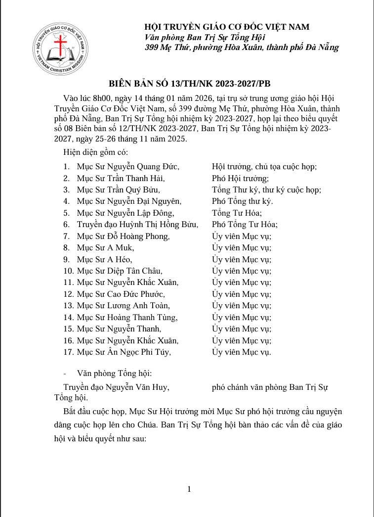 Home Thông báo Biên Bản Số 13 TH/NK 2023 – 2027Thông báoBiên Bản Số 13 TH/NK 2023 – 2027By Ban Biên Tập - 25 January, 202670FacebookTwitterPinterestWhatsApp RELATED ARTICLESMORE FROM AUTHOR Thông báoTổng Hội: Thư Chúc Mừng Giáng Sinh 2025 & Năm Mới 2026 Thông báoBiên Bản Số 12 TH/NK 2023 – 2027 Thông báoThư Kêu Gọi Hướng Lòng Về Miền Bắc Trong Thiên Tai Bão LụtLEAVE A REPLY Cancel replyPlease enter your comment! Please enter your name here You have entered an incorrect email address!Please enter your email address here Save my name, email, and website in this browser for the next time I comment. Mạng xã hội22,952FansLike3,912FollowersFollow0SubscribersSubscribeBài viết mớiNhững Trái Cây Thối | Oneway Radio – Tĩnh Nguyện Hằng... Tĩnh Nguyện Hằng Ngày 8 September, 2023Học Biết Ý Chúa | Oneway Radio – Tĩnh Nguyện Hằng... Tĩnh Nguyện Hằng Ngày 13 December, 2025Mắc Kẹt Ở Nhà | Oneway Radio – Tĩnh Nguyện Hằng... Tĩnh Nguyện Hằng Ngày 28 March, 2022Đối Diện Với Nỗi Đau | Oneway Radio – Tĩnh Nguyện... Tĩnh Nguyện Hằng Ngày 12 September, 2025Tin tức mớiBước Ngoặt Quyết Định | Oneway Radio – Tĩnh Nguyện Hằng... Tĩnh Nguyện Hằng Ngày 27 April, 2024Yếu Đuối Hay Mạnh Mẽ | Oneway Radio – Tĩnh Nguyện... Tĩnh Nguyện Hằng Ngày 7 October, 2024Niềm Hy Vọng Sống | Oneway Radio – Tĩnh Nguyện Hằng... Tĩnh Nguyện Hằng Ngày 17 April, 2022Tin Cậy Chúa Trong Mọi Sự | Oneway Radio – Tĩnh... Tĩnh Nguyện Hằng Ngày 7 May, 2022