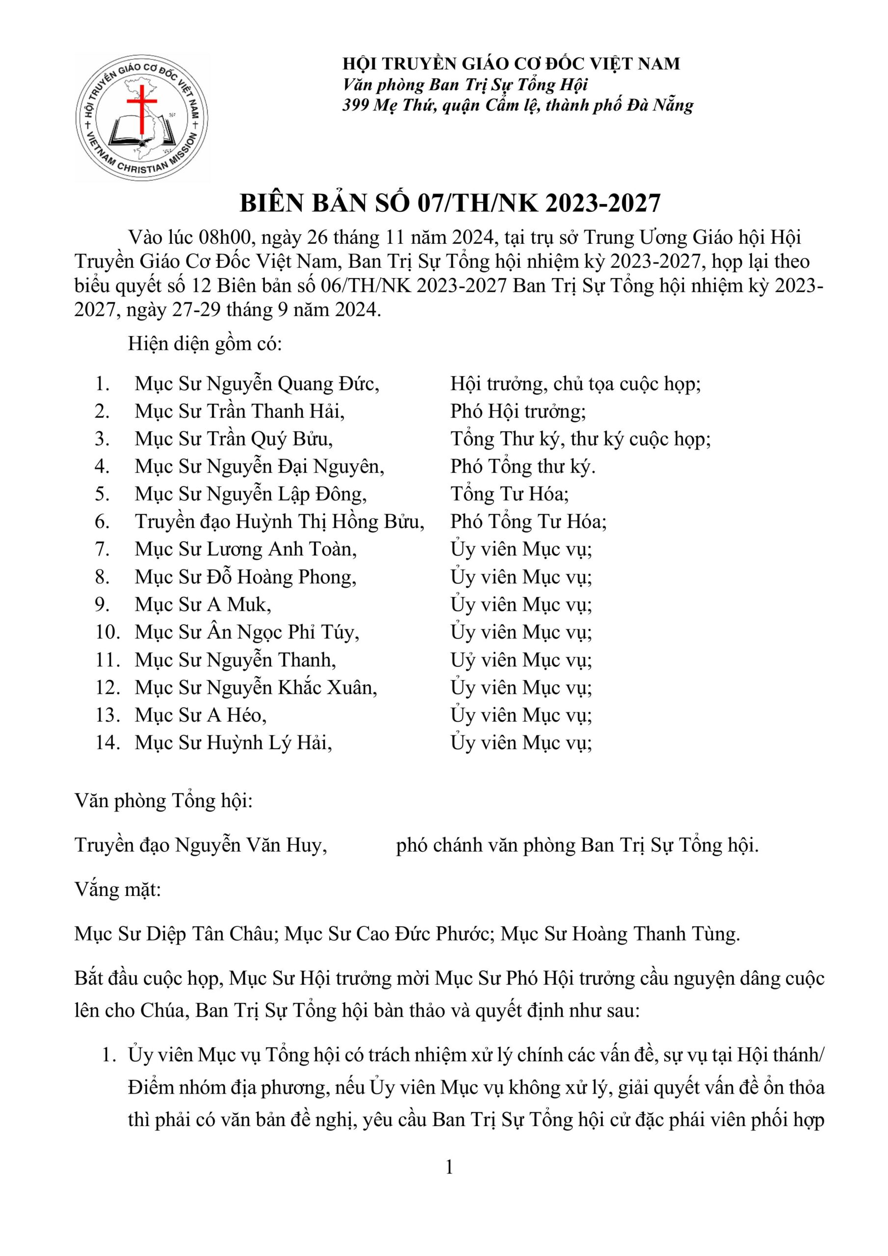 Home Thông báo Biên Bản Số 7/TH/NK 2023-2027Thông báoBiên Bản Số 7/TH/NK 2023-2027By Ban Biên Tập - 6 December, 20244950FacebookTwitterPinterestWhatsApp RELATED ARTICLESMORE FROM AUTHOR Thông báoThư Kêu Gọi Hướng Lòng Về Miền Bắc Trong Thiên Tai Bão Lụt Thông báoBiên Bản Số 11 TH/NK 2023-2027 Thông báoBiên Bản Số 10 TH/NK 2023-2027LEAVE A REPLY Cancel replyPlease enter your comment! Please enter your name here You have entered an incorrect email address!Please enter your email address here Save my name, email, and website in this browser for the next time I comment. Mạng xã hội22,952FansLike3,912FollowersFollow0SubscribersSubscribeBài viết mớiSống Thỏa Vui Trong Chúa | Oneway Radio – Tĩnh Nguyện... Tĩnh Nguyện Hằng Ngày 30 June, 2023An Nghỉ Nơi Chúa | Oneway Radio – Tĩnh Nguyện Hằng... Tĩnh Nguyện Hằng Ngày 6 July, 2024Bạn Muốn Trở Thành Ai? | Oneway Radio – Tĩnh Nguyện... Tĩnh Nguyện Hằng Ngày 8 August, 2022Vui Mừng Trong Gian Khổ | Oneway Radio – Tĩnh Nguyện... Tĩnh Nguyện Hằng Ngày 25 May, 2025Tin tức mớiNơi Ẩn Nấp Lúc Nguy Nan | Oneway Radio – Tĩnh... Tĩnh Nguyện Hằng Ngày 28 June, 2023Hội Thảo Âm Nhạc Và Ca Nhạc Thánh Cơ Đốc Việt... Tin tức 15 December, 2021Chuyện Gì Đã Xảy Ra Với Tin Lành? | Oneway Radio... Tĩnh Nguyện Hằng Ngày 9 January, 2023Trông Đợi Chúa Như Ánh Ban Mai | Oneway Radio –... Tĩnh Nguyện Hằng Ngày 14 July, 2022