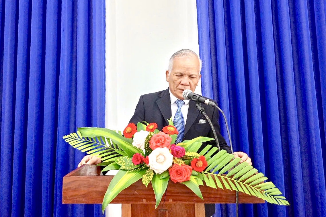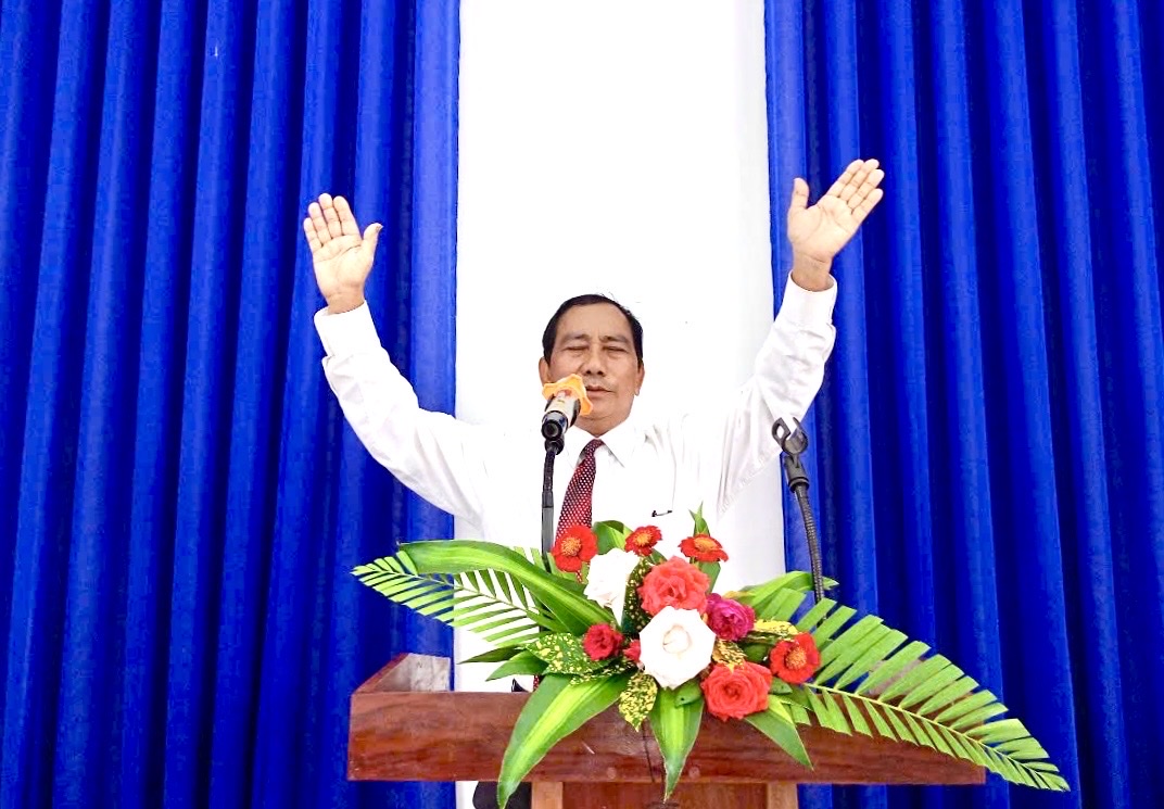 Mục sư Nguyễn Khắc Xuân cầu nguyện bắt đầu chương trình Bồi linh Hiệp nguyện
