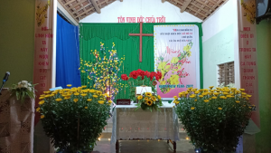 Điểm nhóm Khối 6, thị trấn Khâm Đức, huyện Phước Sơn, tỉnh Quảng Nam thờ phượng Chúa trong ngày đầu năm.