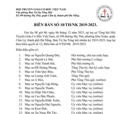 Xin thông báo với quý Mục sư, Truyền đạo, Truyền đạo Tình nguyện; quý Quản nhiệm, Phó Quản nhiệm, Phụ tá các Hội thánh,...