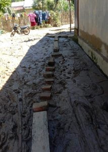 Nhiều hộ dân trong điểm 3 Hội Thánh Đắk Đoát bị ngập hơn nửa mét do nước dâng lên kéo theo bùn.