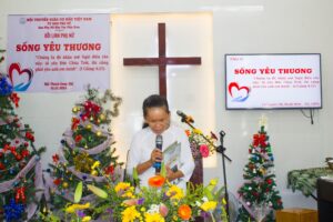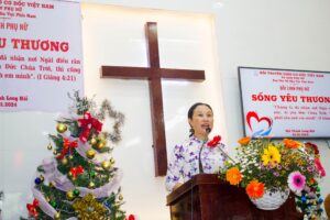 Chia sẻ “Sống Yêu Thương” Cô Nguyễn Thị Thanh Minh – Thủ quỹ UBPN, để khích lệ quý bà, quý cô, quý chị em phụ nữ sống vị tha bằng tình yêu thương của Chúa để bày tỏ Danh Chúa cho những người xung quanh, mặc dù họ ghét và tranh cạnh với mình, để sự sáng và sự sống của Chúa được tỏa soi qua đời sống mỗi người.