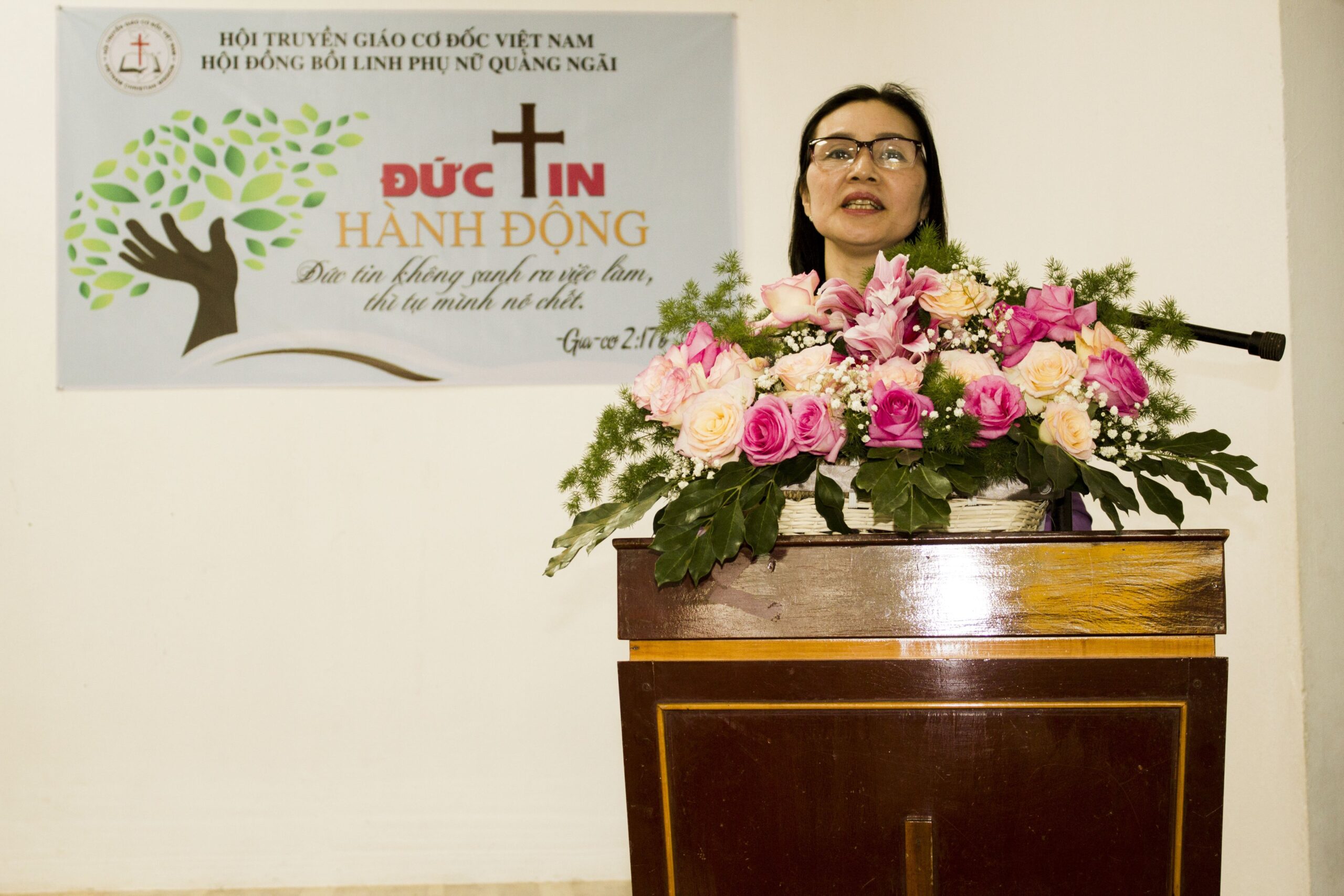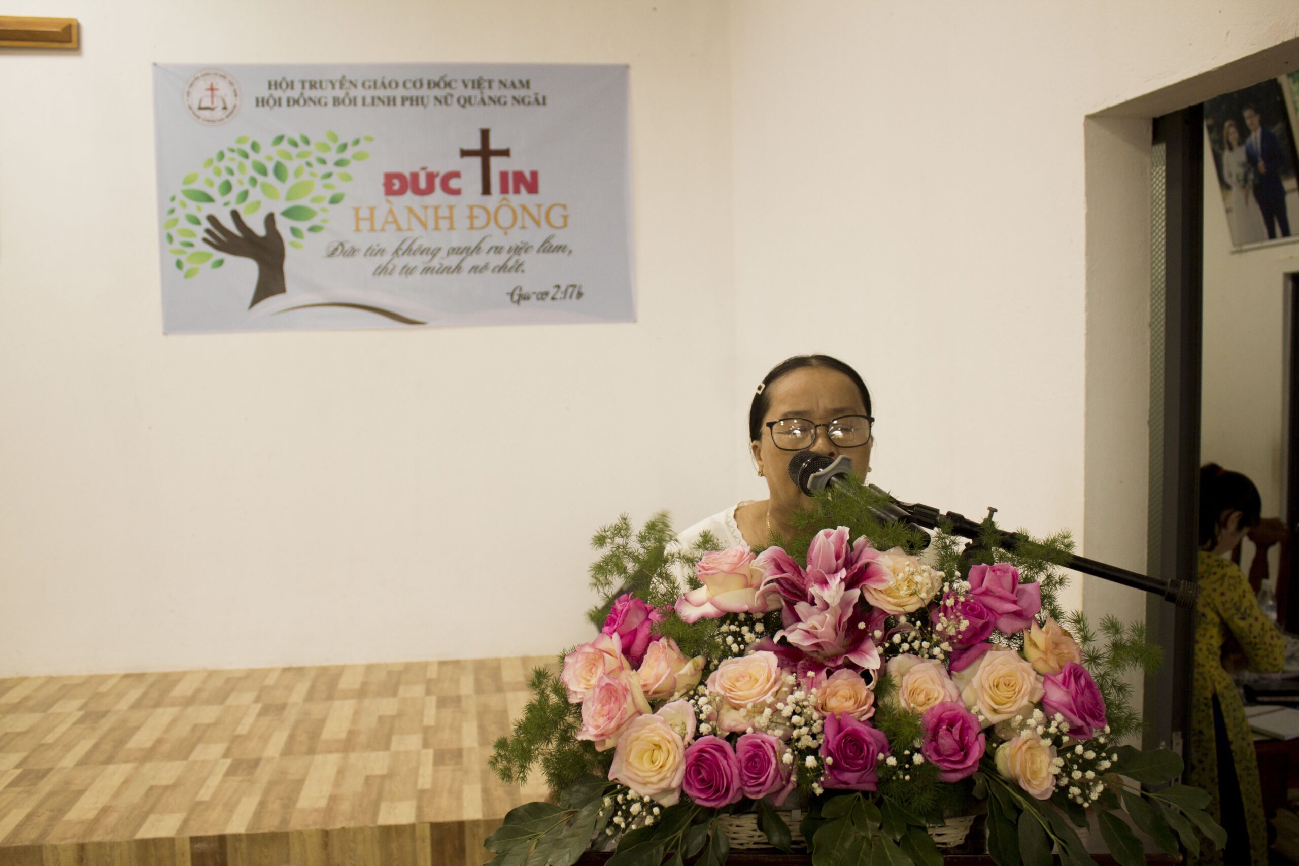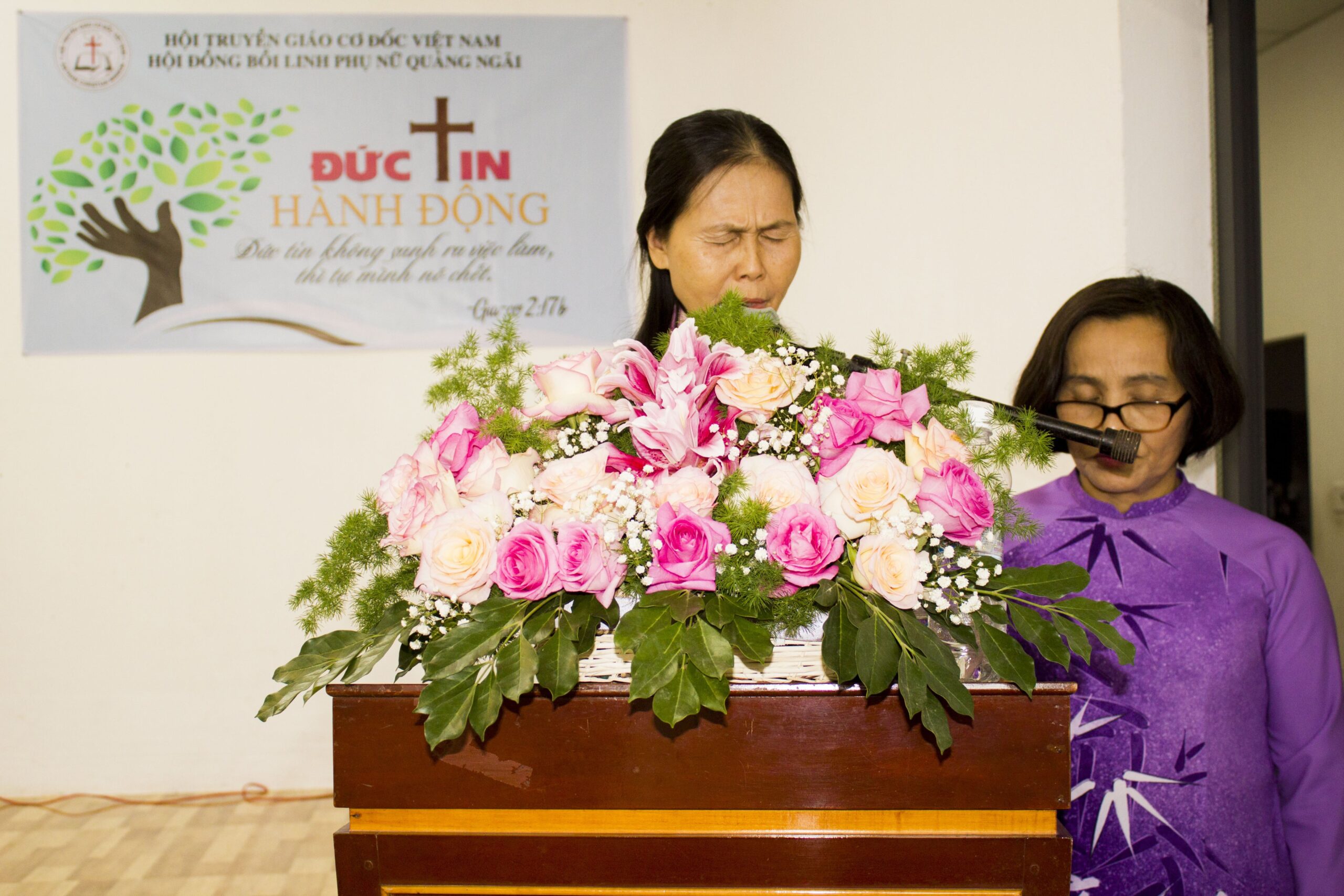 Cô Nguyễn Thị Bình (HT Quảng Ngãi) cầu nguyện cho các Hội thánh
