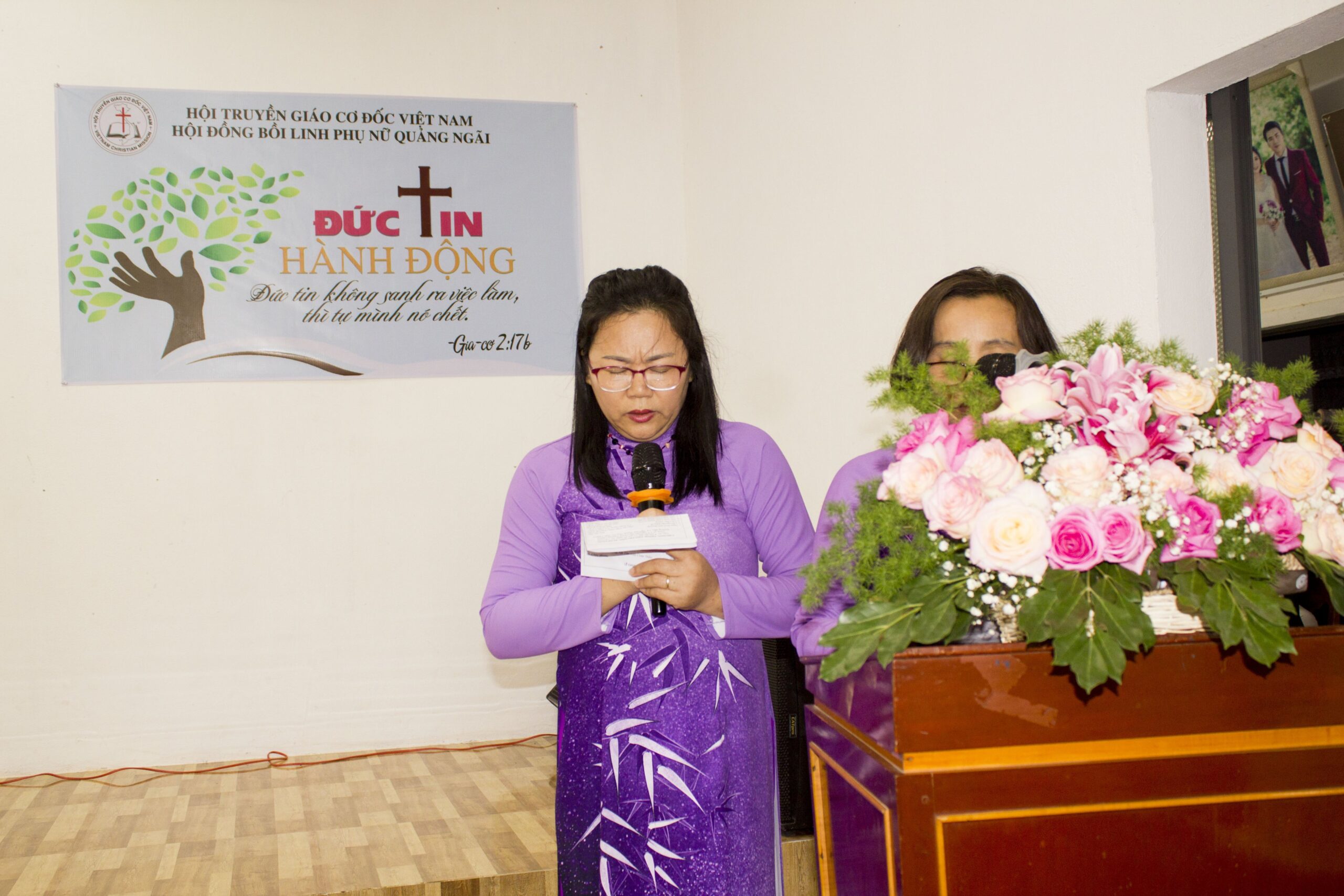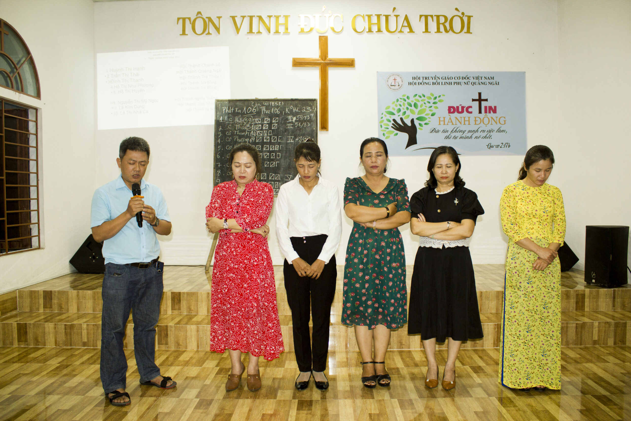 Cảm ơn Đức Chúa Trời đã ban ơn, gìn giữ và hướng dẫn cho Chương trình Bồi Linh Phụ Nữ khu vực Quảng Ngãi diễn ra trong sự bình an, phước hạnh, đem đến sự khích lệ lớn cho các chị em Phụ Nữ trong khu vực Quảng Ngãi. Cầu xin Chúa sử dụng các chị em trong công tác mà Cha Ngài đã giao phó, giúp đỡ Hội thánh, chức vụ của Chồng và gây dựng đức tin lẫn nhau trong vòng con cái Chúa. Amen!!!