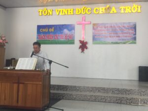 Mục sư Nguyễn Hữu Thành (QNHT Ngọc Hồi) ban Tiệc Thánh