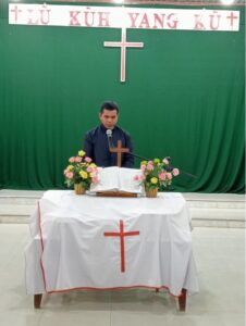 Mục sư Nguyễn Khắc Xuân (Uvmv Nam Kontum) cầu nguyện khai lễ