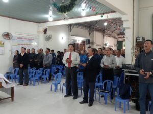 Mục sư A Thông cầu nguyện kết thúc buổi hiệp nguyện