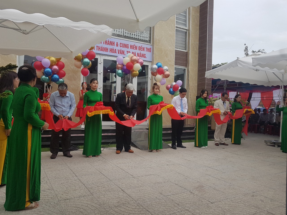 Mục sư Huỳnh Tấn Phong (QNHT) , Mục sư Trần Thanh Hải (P.HT II), ông Nguyễn Đình Tuấn (Phó Trưởng Ban Tôn giáo TP Đà Nẵng), ông Ngô Khôi (Nguyên Trưởng Ban Tôn giáo TP Đà Nắng) cắt băng khánh thành nhà thờ.