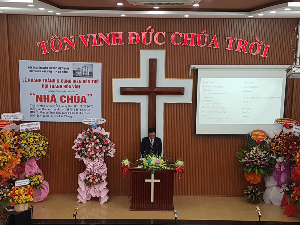Cảm ơn Đức Chúa Trời, sau 3 năm từ ngày khởi công: Ngày 10 tháng 01 năm 2019 đến ngày 20 tháng 07 năm 2022 nhà thờ Hòa Vân tọa lạc tại số 01 Đường Xuân Thiều 23, Phường Hòa Hiệp Nam, Quận Liên Chiểu, Thành phố Đà Nẵng đã long trọng tổ chức Lễ Khánh Thành và Cung Hiến nhà thờ lên cho Đức Chúa Trời.