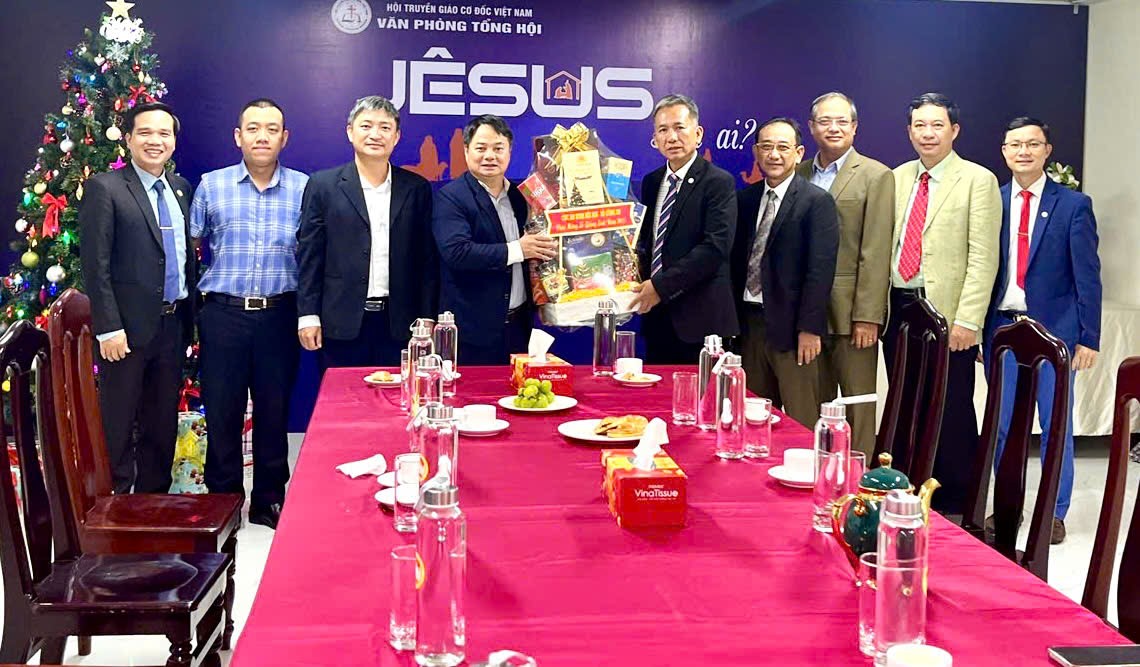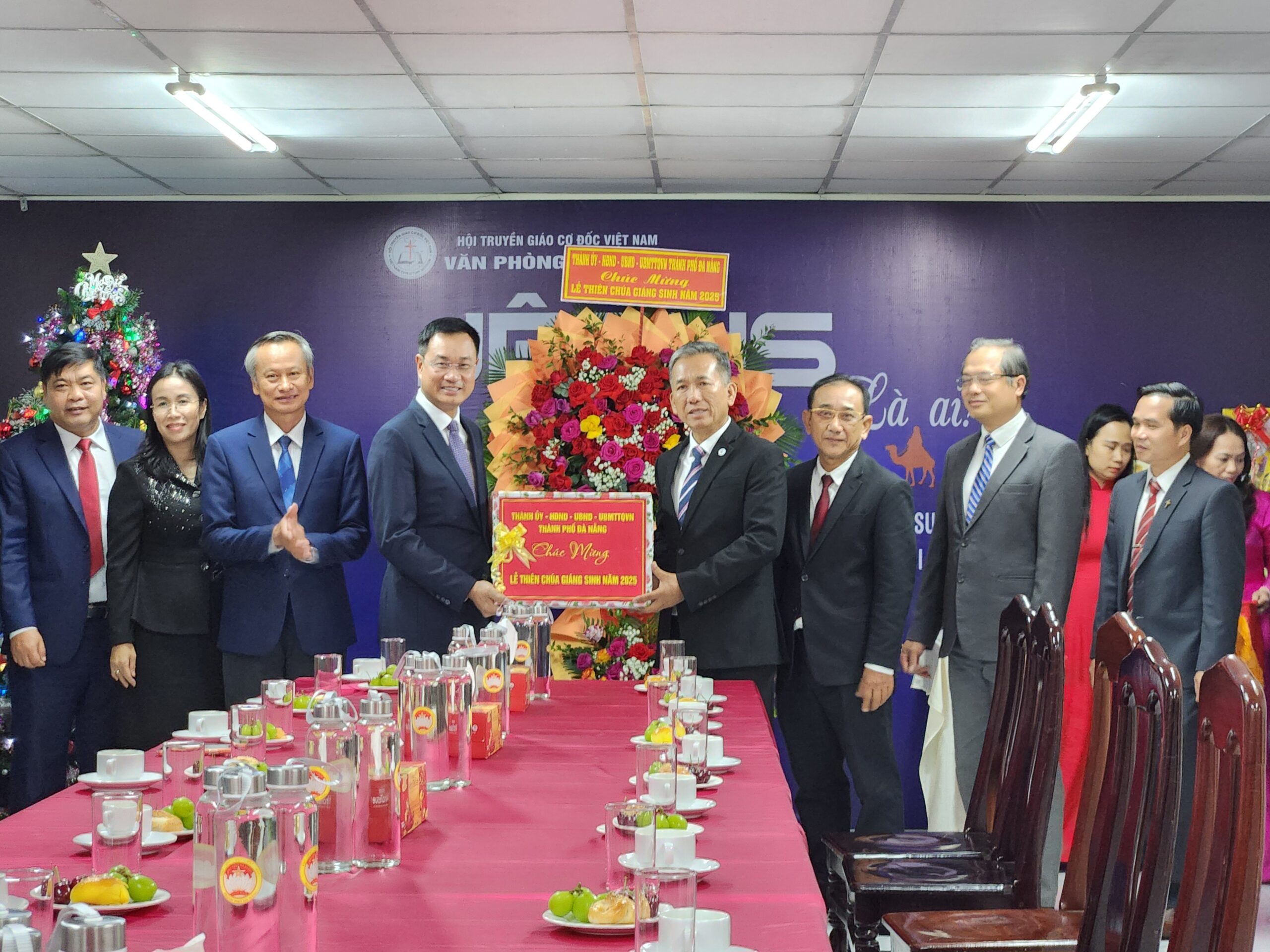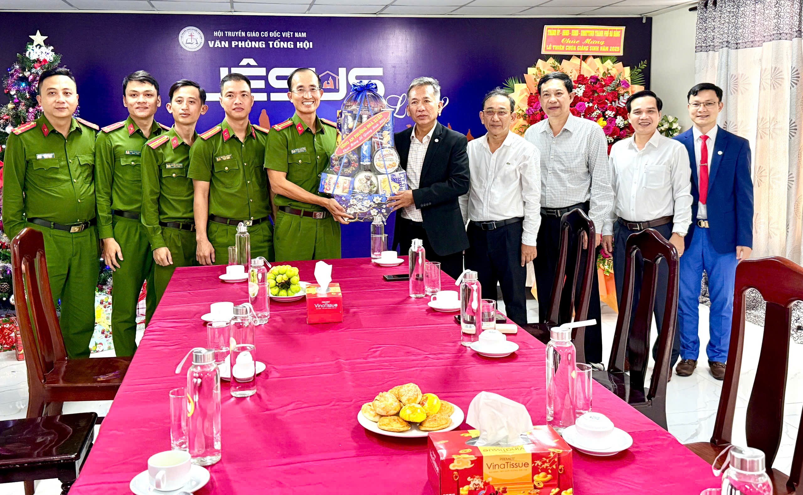 Nhân Lễ Kỷ niệm Chúa Giê-xu Giáng sinh năm 2025, các cơ quan chính quyền đến thăm và chúc mừng Giáo hội tại Văn phòng Tổng hội số 399 Mẹ Thứ, phường Hòa Xuân, TP Đà Nẵng.