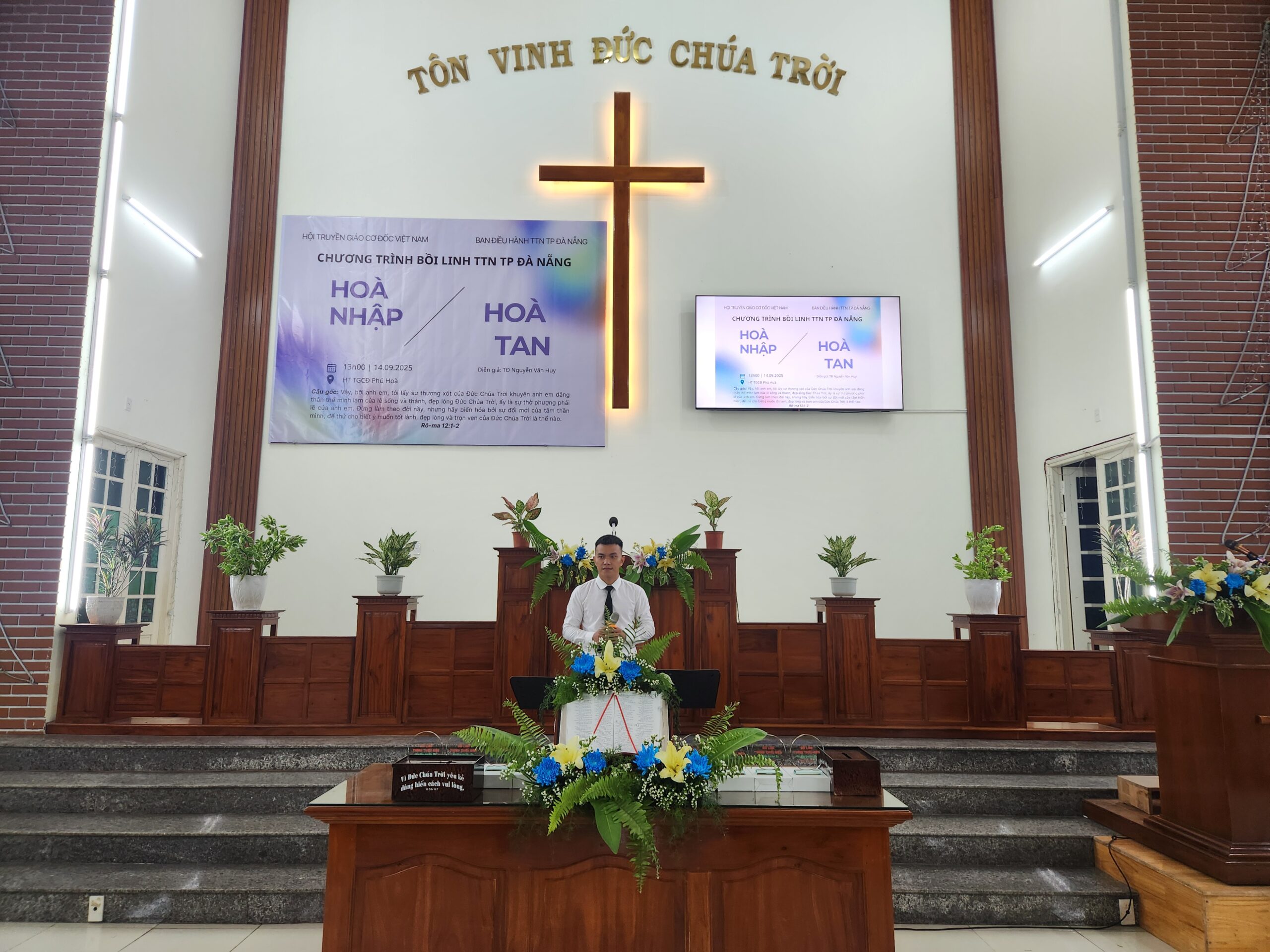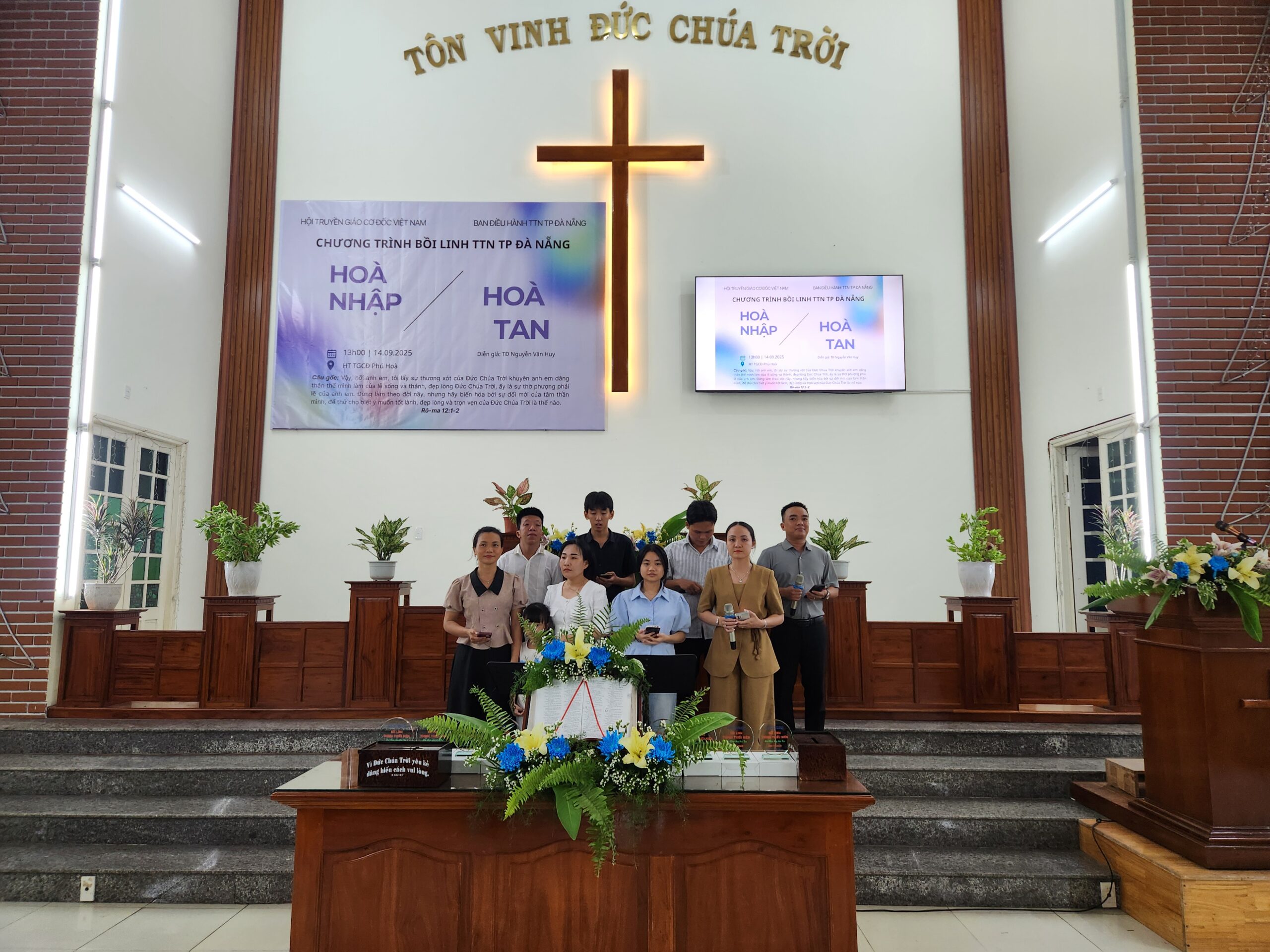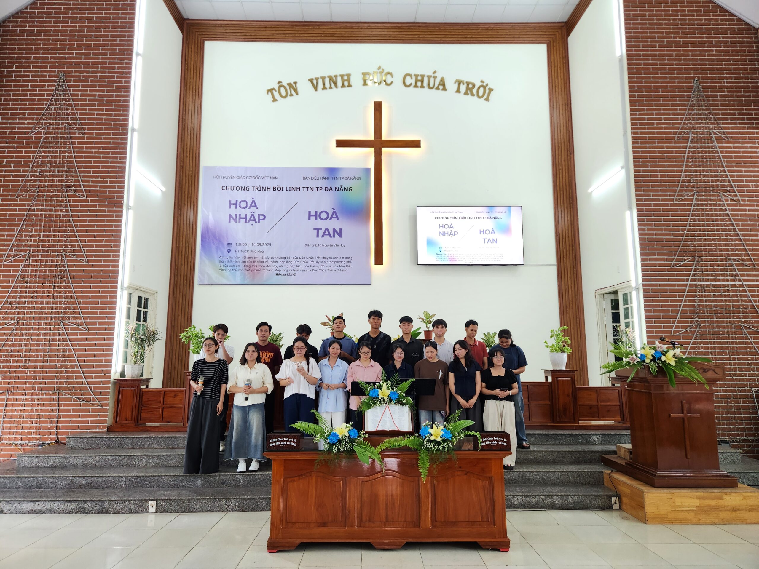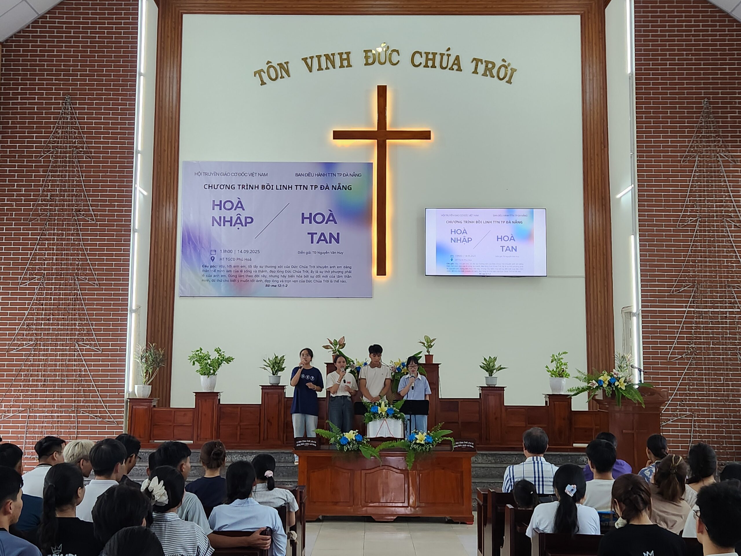 Nhằm đem đến sự gây dựng, khích lệ và gắn kết các bạn thanh thiếu niên (TTN) trong khu vực, cũng như nhắc nhở các bạn sống giữ mình giữa thế gian mờ tối Ban Điều hành TTN TP Đà Nẵng đã tổ chức chương trình: Bồi linh Thanh Thiếu niên với chủ đề: HÒA NHẬP HAY HÒA TAN. Chương trình diễn ra lúc 13h30 – 20h00 ngày 14/9/2025 tại Hội thánh Phú Hòa, thôn Phú Hòa 2, xã Bà Nà, TP Đà Nẵng.