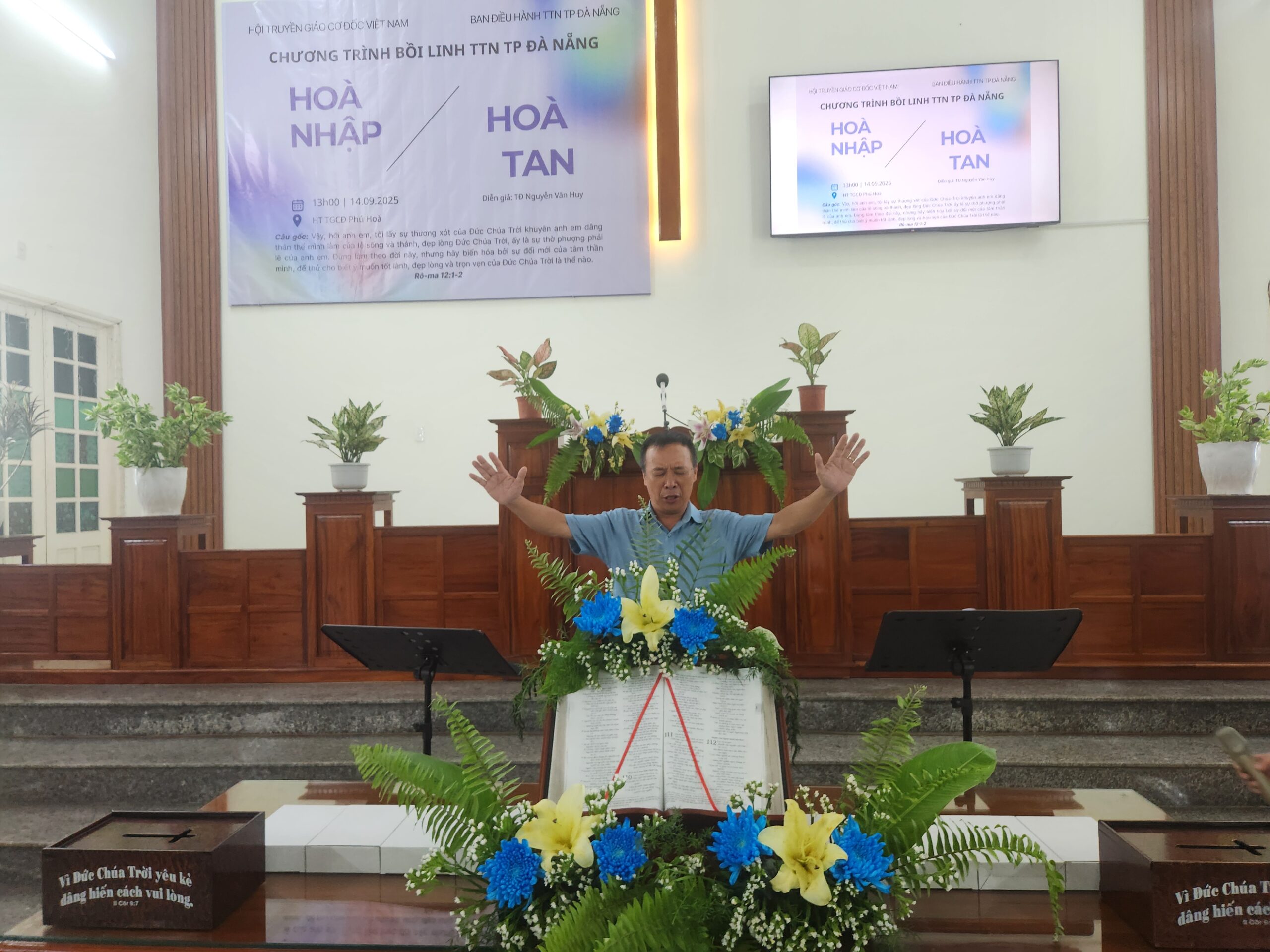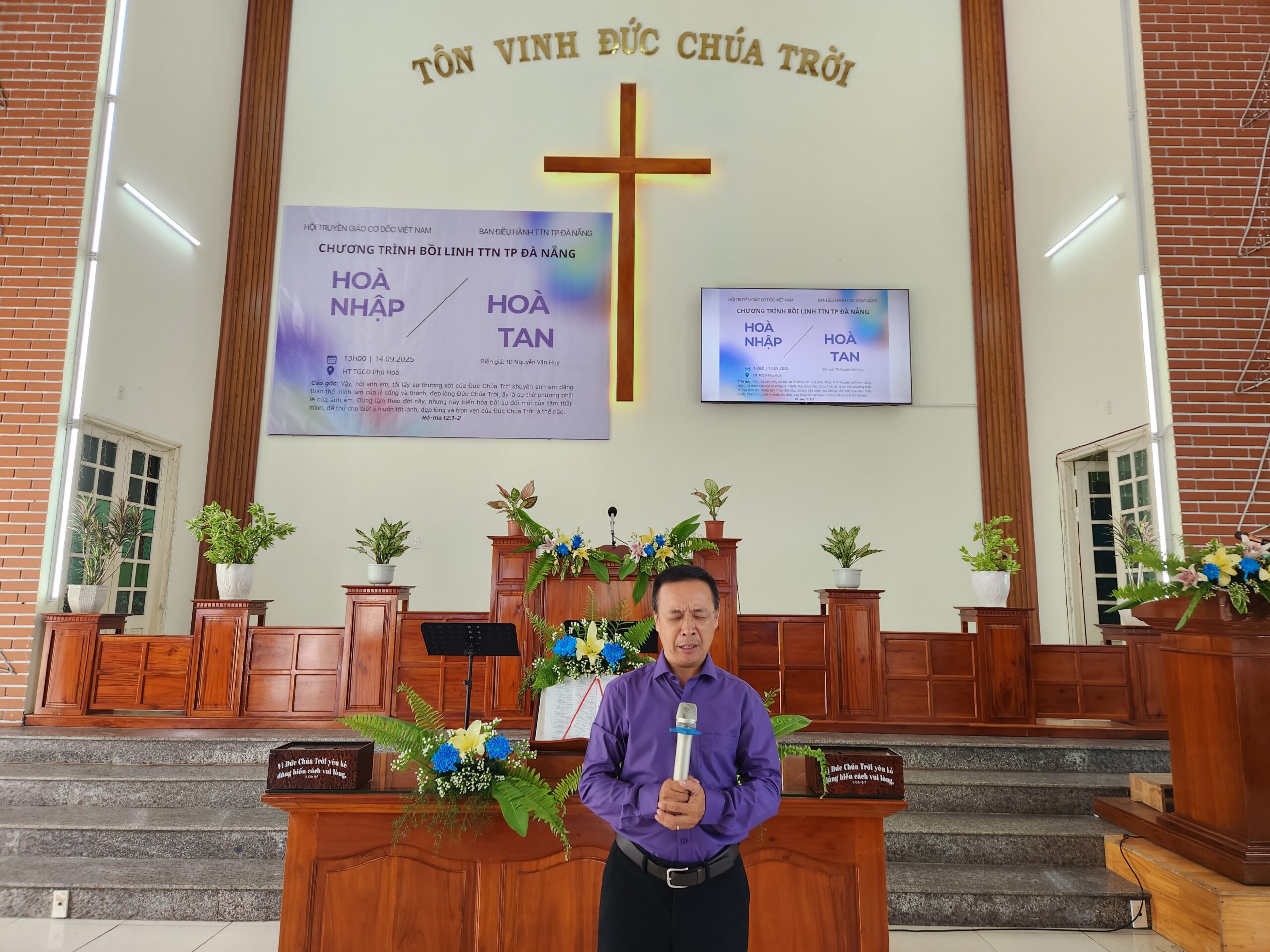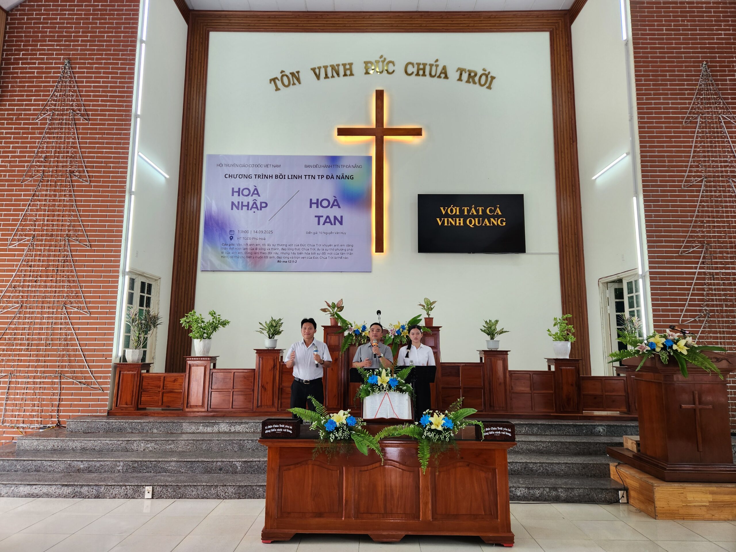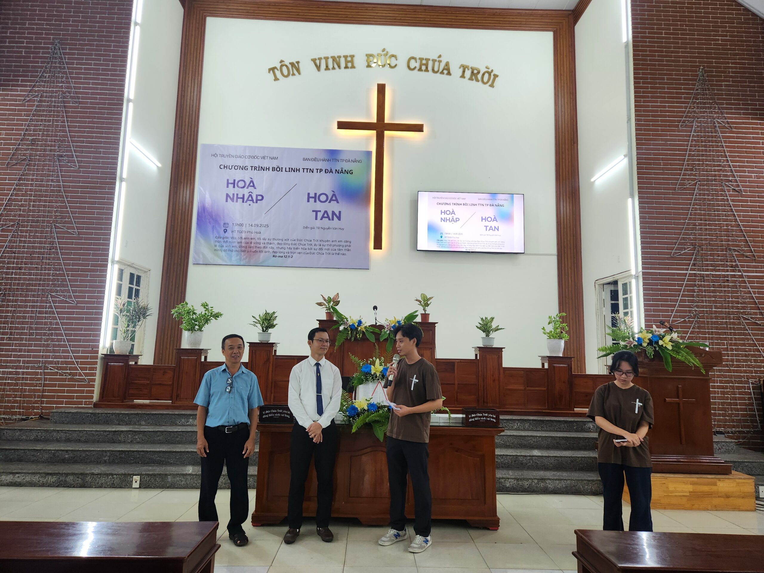 Nhằm đem đến sự gây dựng, khích lệ và gắn kết các bạn thanh thiếu niên (TTN) trong khu vực, cũng như nhắc nhở các bạn sống giữ mình giữa thế gian mờ tối Ban Điều hành TTN TP Đà Nẵng đã tổ chức chương trình: Bồi linh Thanh Thiếu niên với chủ đề: HÒA NHẬP HAY HÒA TAN. Chương trình diễn ra lúc 13h30 – 20h00 ngày 14/9/2025 tại Hội thánh Phú Hòa, thôn Phú Hòa 2, xã Bà Nà, TP Đà Nẵng.