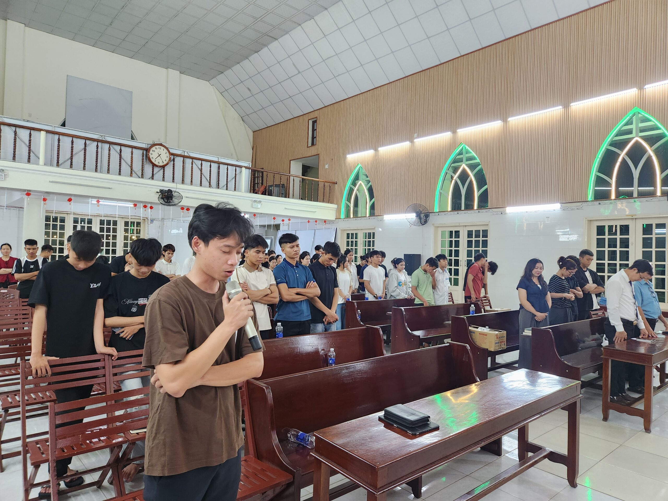 Truyền đạo Nguyễn Kiểm – Đặc Trách TTN TP Đà Nẵng cầu nguyện dâng thì giờ bồi linh lên Ba Ngôi Đức Chúa Trời