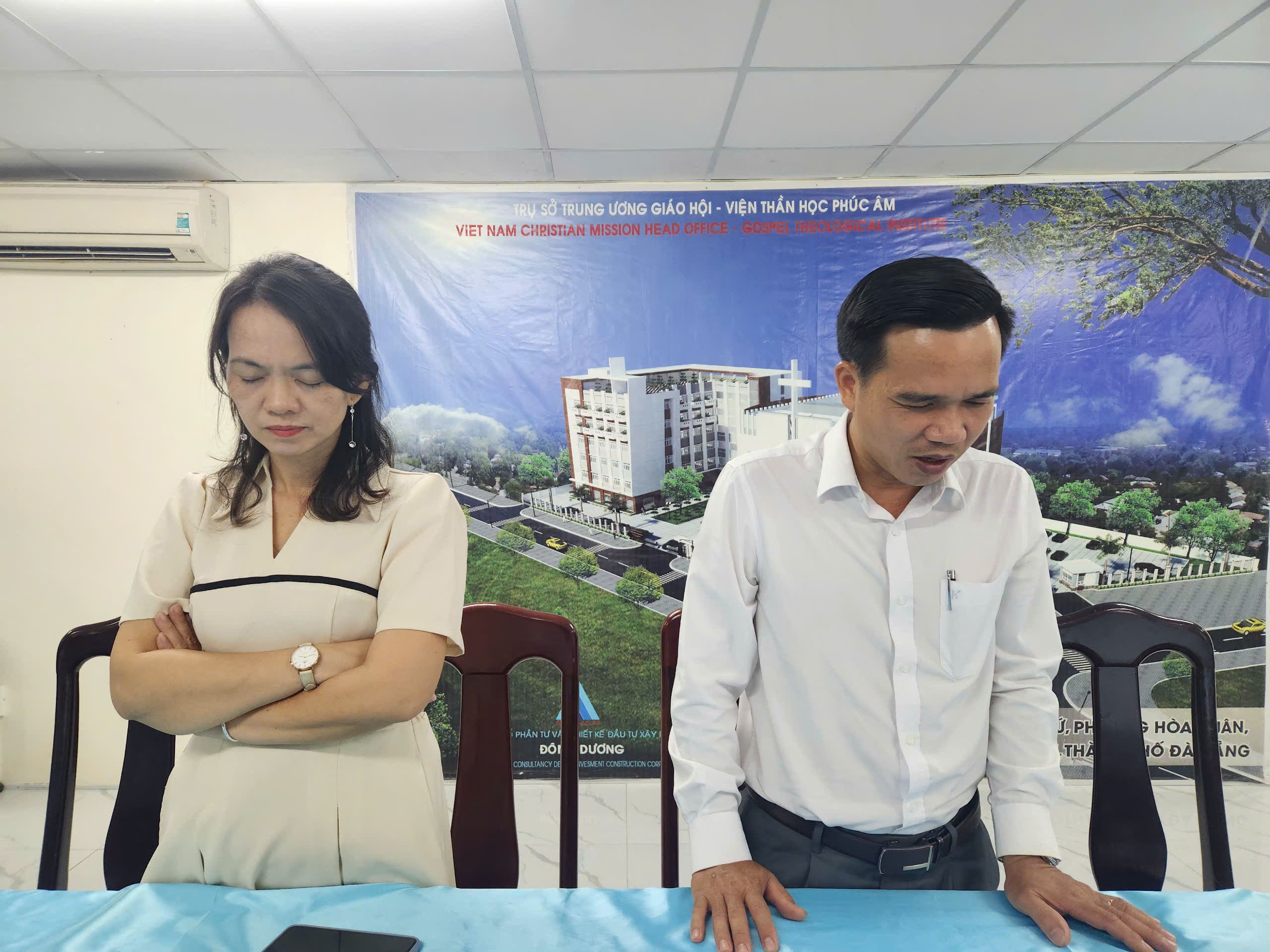 Mục sư Trần Quý Bửu và Mục sư Đỗ Hoàng Phong cầu nguyện cho những vấn đề các Hội thánh nêu ra.