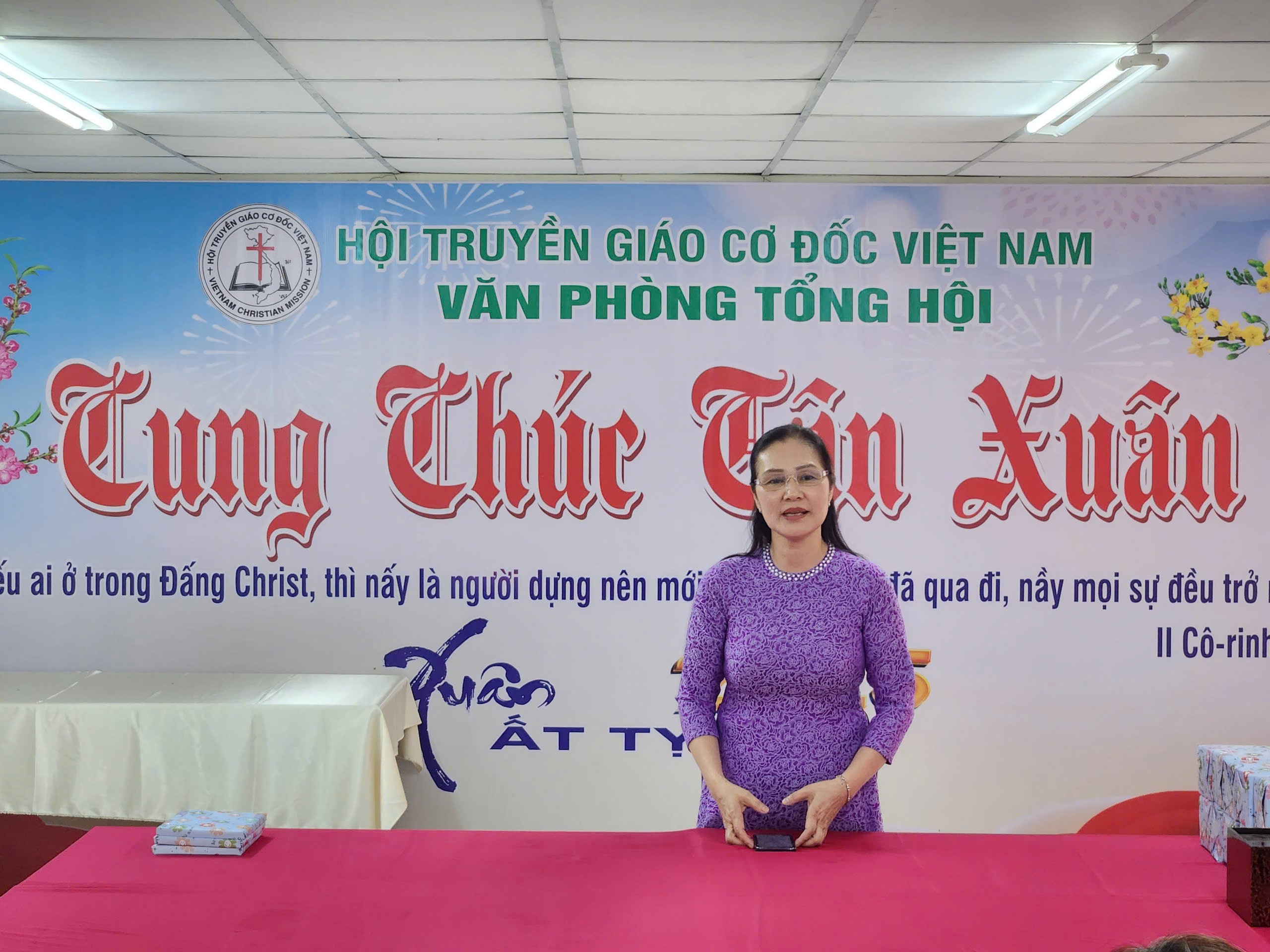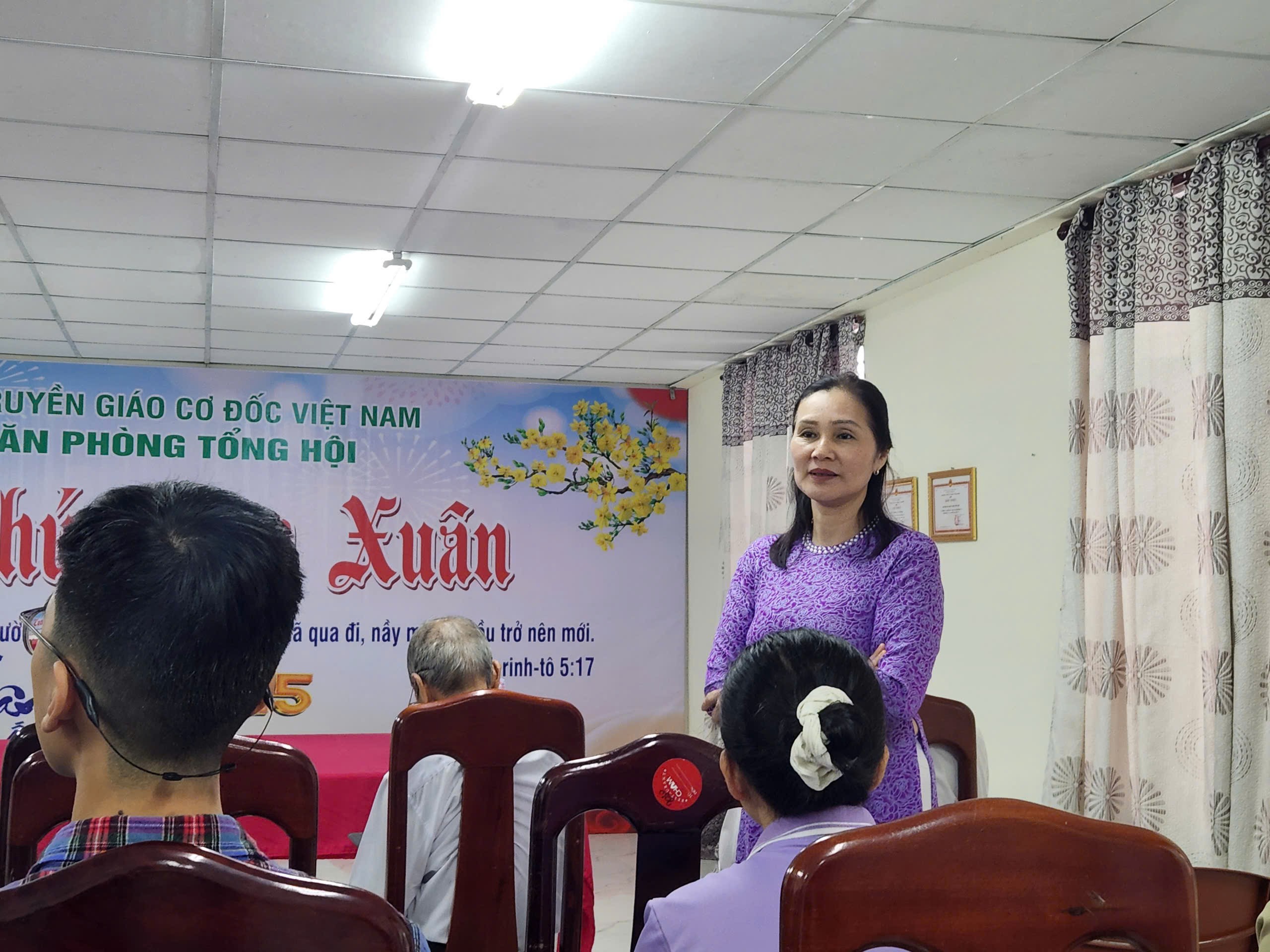 Cô Nguyễn Thị Dung Nguyệt chia sẻ lời Chúa khích lệ Ban Hiệp nguyện.