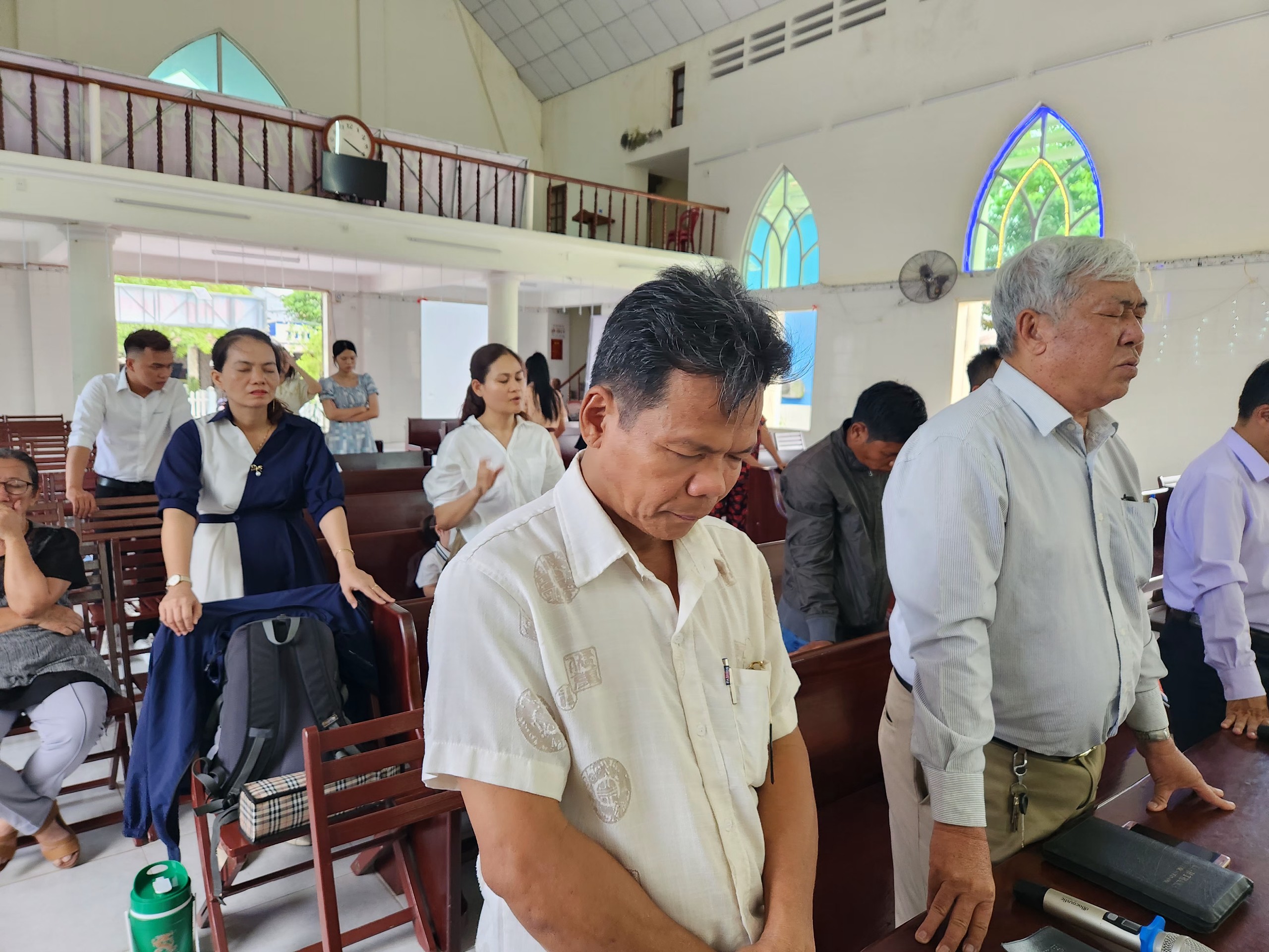 Ông Huỳnh Hồng – Thư ký Hội thánh Phú Hòa cầu nguyện đáp ứng lời Chúa.