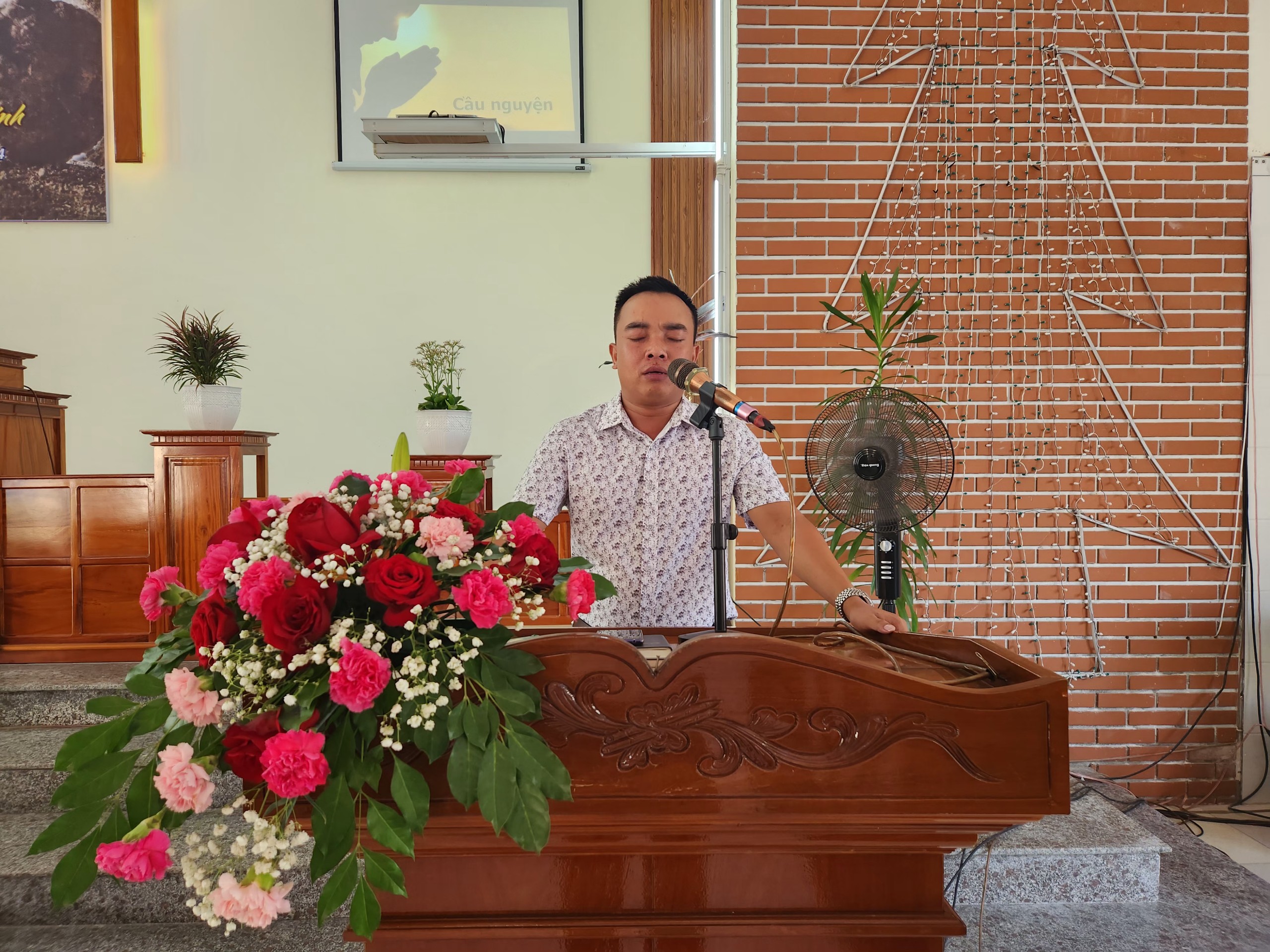 Mục sư Huỳnh Tấn Phong – Quản nhiệm Hội thánh Hòa Vân cầu nguyện dâng thì giờ hiệp nguyện lên Ba Ngôi Đức Chúa Trời.