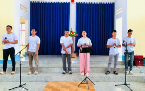 Ban Hát dẫn Hội thánh Plei Marin hướng dẫn thờ phượng