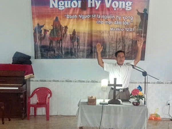Mục sư Siu Than cầu nguyện dâng chương trình lên Ba Ngôi Đức Chúa Trời.