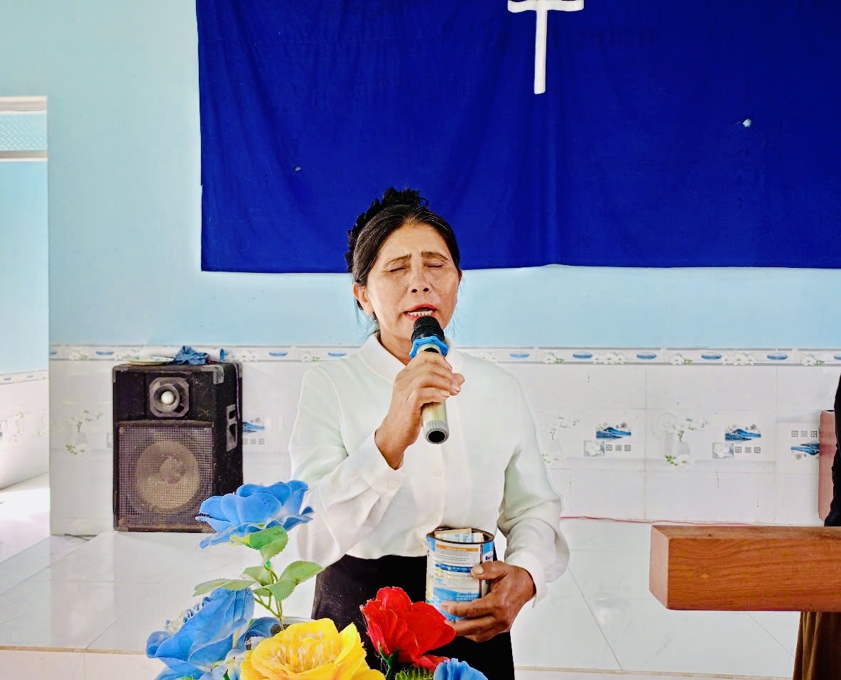 Cô AMi Vân cầu nguyện cho số tiền dâng hiến