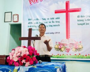 Mục sư Ksor Dék chia sẻ Lời Chúa.