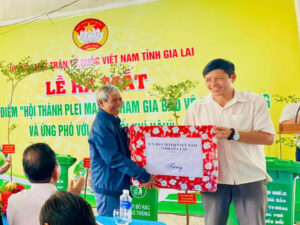 Ông Đinh Ngọc Hải, Phó Chủ tịch UBMTTQVN tỉnh Gia lai, lên phát biểu nhấn mạnh cần sự đoàn kết với cả mọi người có tôn giáo và không tôn giáo, cùng chung tay xây dựng nông thôn mới, cùng nhau công tác bảo vệ môi trường. Ông thay mặt UBMTTQVN tỉnh Gia Lai tặng quà cho Hội thánh, Mục sư Ksor Đek đại diện Hội thánh nhận quà.