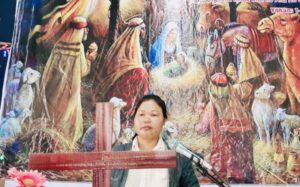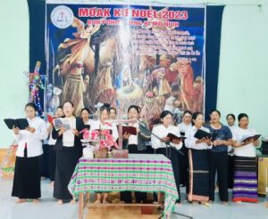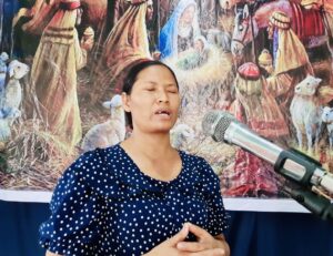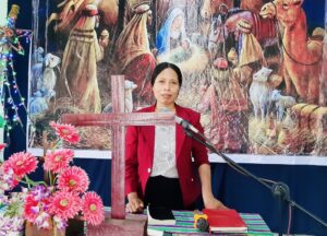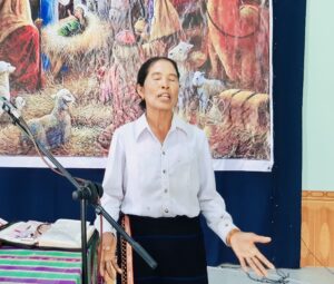 Cô Nay H’Bõ – BĐH Phụ nữ Hội thánh Plei Kual, hướng dẫn chương trình thờ phượng