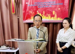 Mục sư Nguyễn Đại Nguyên dâng lời tạ ơn Chúa và nêu ra những nhu cầu và định hướng phát triển của Hội thánh Nam Sài Gòn, Hội thánh Bến Cát và Mục vụ An sinh Xã hội trong năm mới.