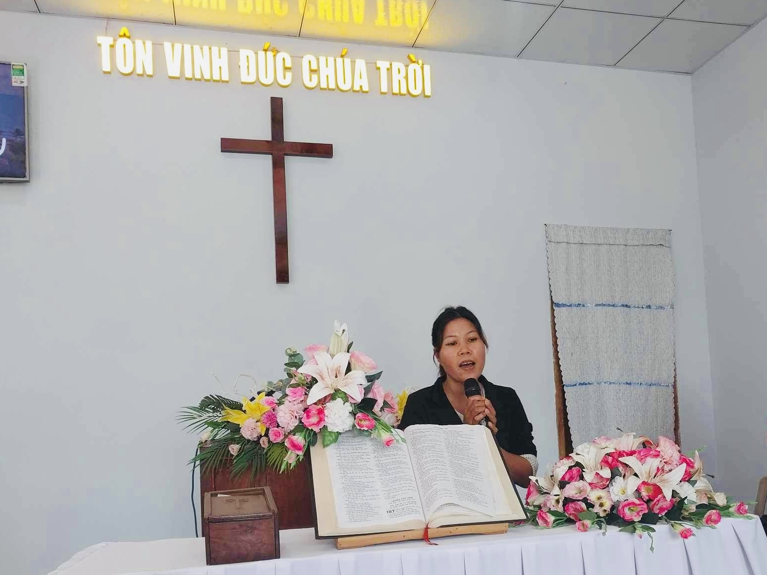 Cô Mó Thoa – Chấp sự Hội thánh Quang Phú, tỉnh Đắk Lắk ngợi khen Chúa