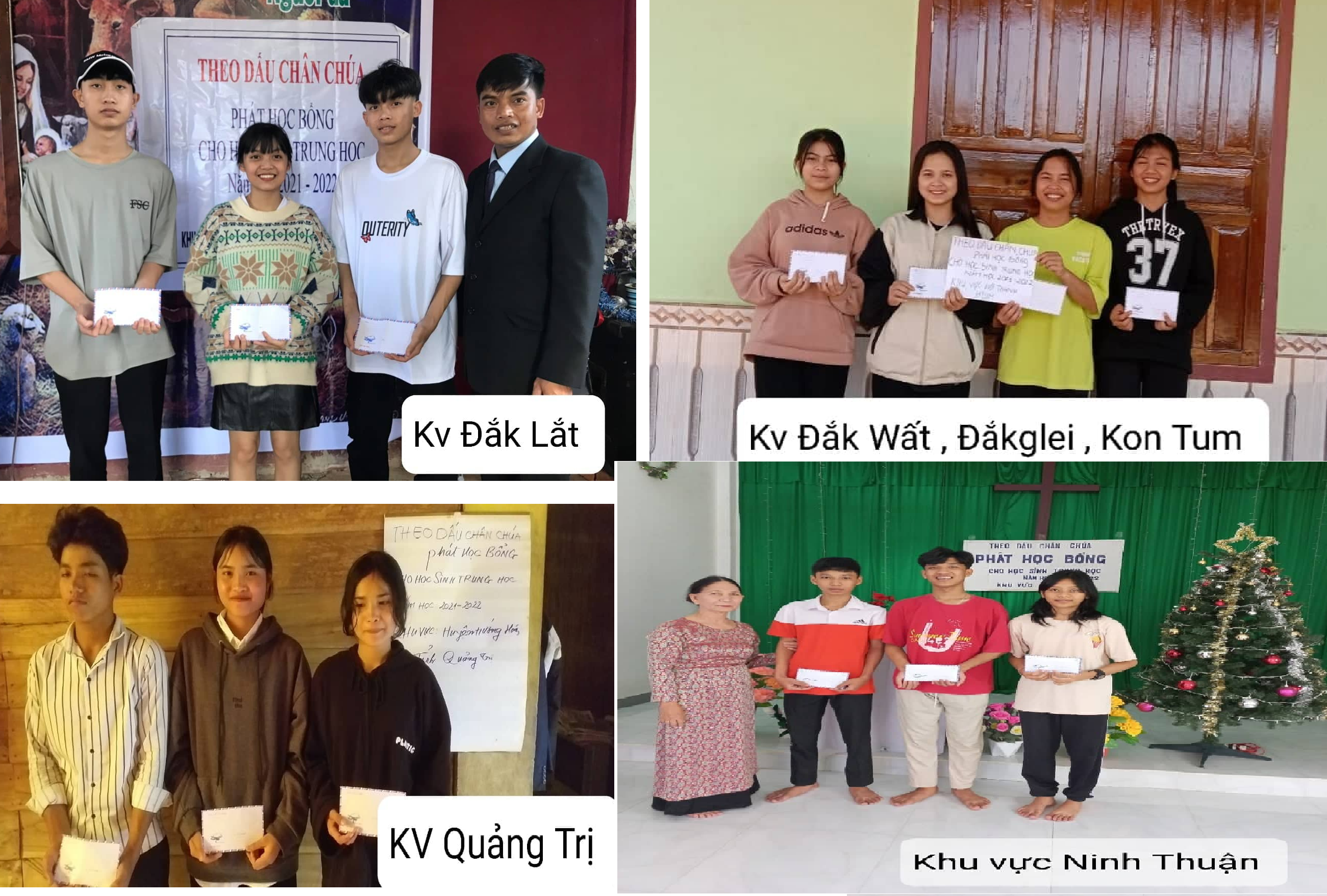 Bên cạnh đó cũng có những nơi khác như khu vực Đắk lắt, Ninh Thuận , Miền Nam, Quảng Trị..vì hoàn cảnh dịch bệnh nên không thể tập trung trong khi phát học bổng. Cảm ơn Chúa việc phát cho những nơi này cũng đã hoàn thành gởi đến kịp thời cho các em.
