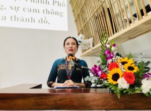 Xin Quý Vị tiếp tục cầu thay, khích lệ, nâng đỡ, hỗ trợ Ủy ban Phụ Nữ để Ủy ban Phụ Nữ tiếp tục cậy ơn sức Chúa ban hầu hoàn thành tốt những kế hoạch mà Ủy ban Phụ Nữ sắp thực hiện trong suốt nhiệm kỳ mới 2024-2027. Tạ ơn Chúa, đã cho chương trình khai mạc và bồi linh 1 diễn ra cách tốt đẹp. Xin Chúa ban ơn cho những chương trình còn lại, hầu đem đến sự khích lệ cho hết thảy quý Bà, quý Cô.