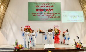 Ủy ban Phụ nữ và Ban Điều Hành Phụ nữ các khu vực ngợi khen Chúa biệt Thánh ca “Kết Chúng Con Làm Một”