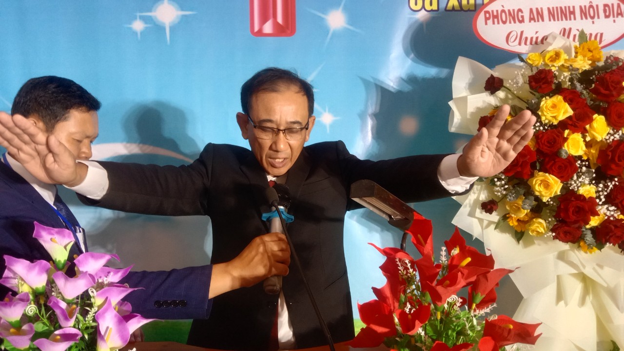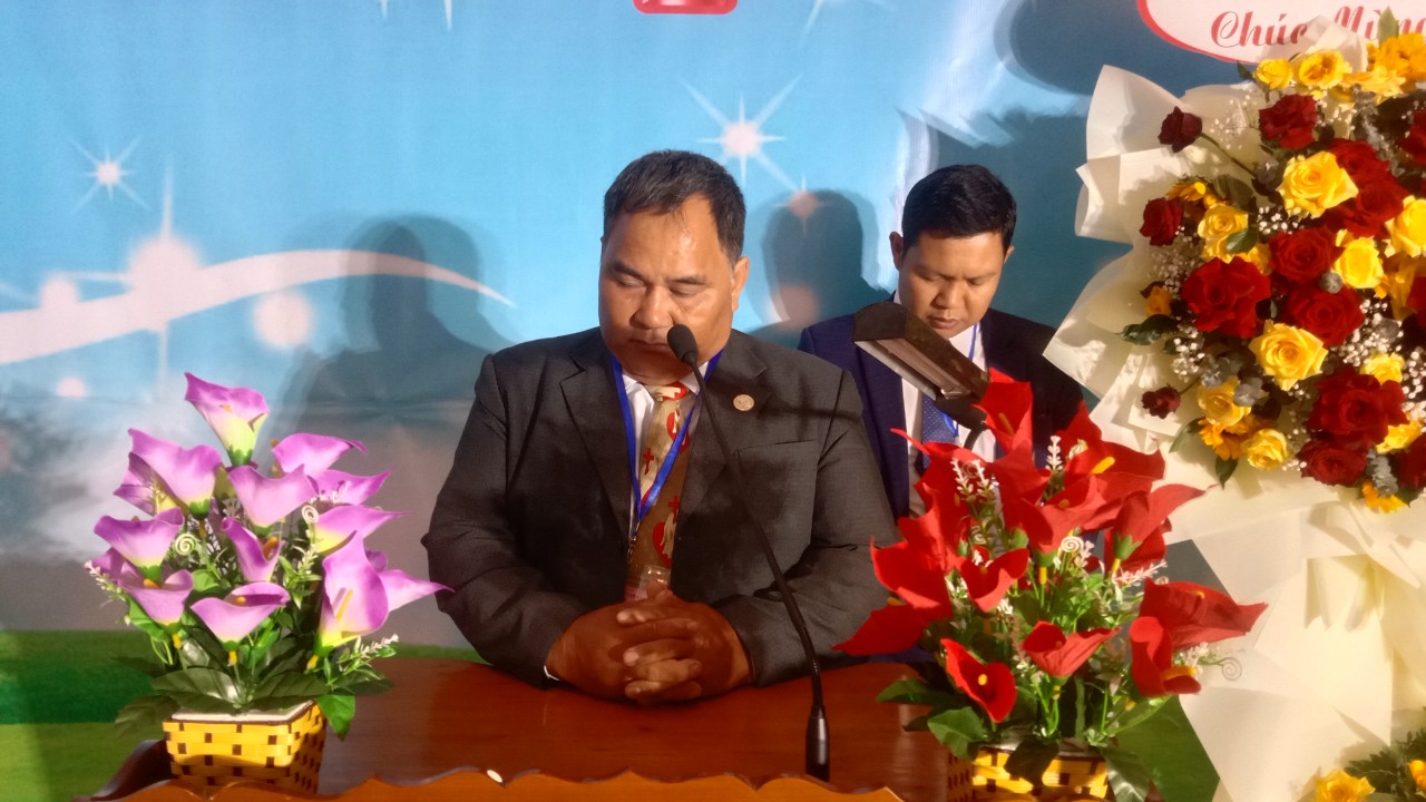 Mục sư A Muk cầu nguyện dâng thì giờ lên Ba Ngôi Đức Chúa Trời.