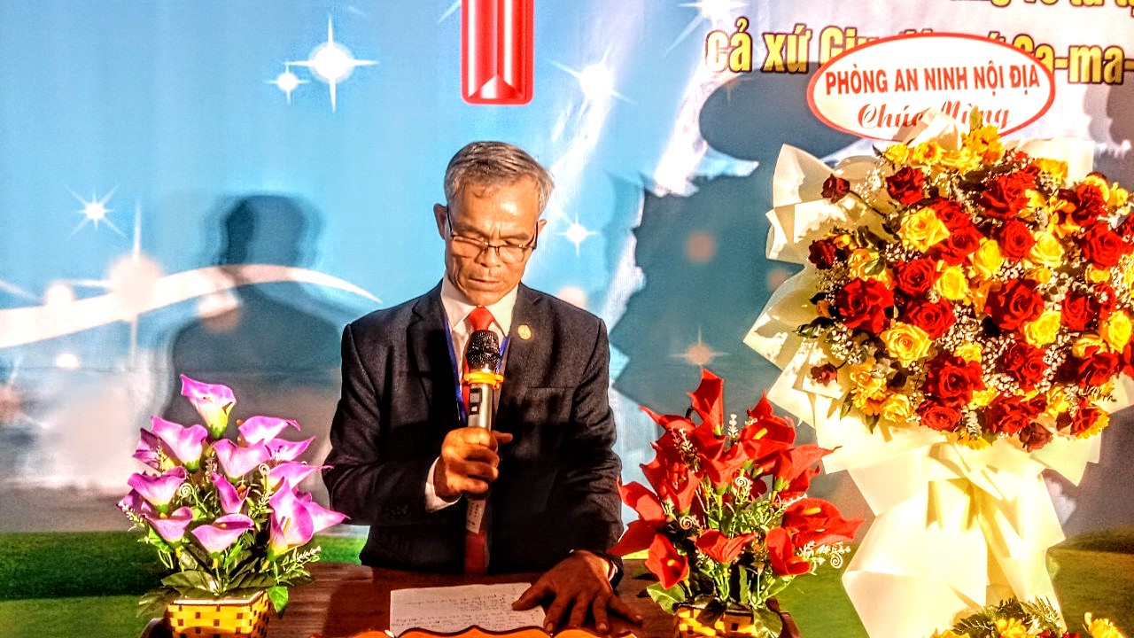 Mục sư A Héo – UVBTSTH, Mục vụ khu vực Bắc Kon Tum – QNHT Đắk Glei tuyên đọc khai mạc Hội đồng.