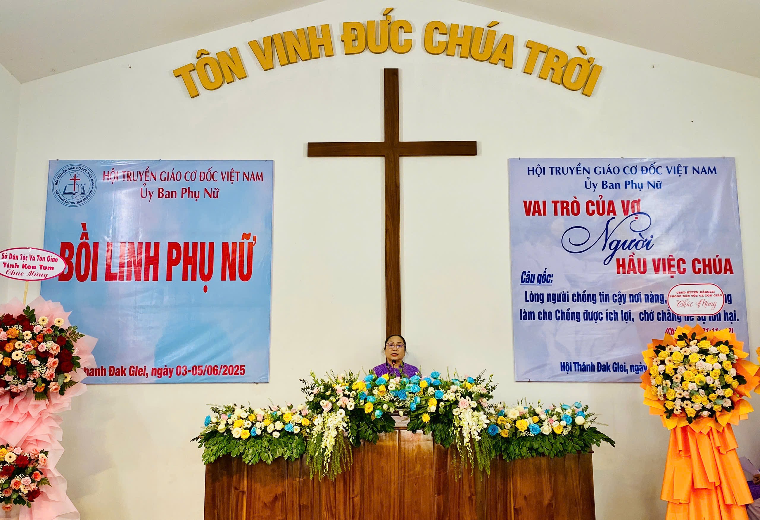 Vào lúc 14h00 ngày 3/6/2025 đã diễn ra chương trình khai mạc BỒI LINH PHỤ NỮ do Uỷ ban Phụ nữ tổ chức tại Hội thánh Đăk Glei, xã Đăk Pek, huyện Đăk Glei, tỉnh Kon Tum với chủ đề: “VAI TRÒ CỦA VỢ NGƯỜI HẦU VIỆC CHÚA“.