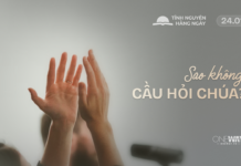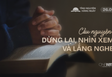 Cầu nguyện: Lạy Chúa, có những việc con cố gắng hết sức mà vẫn không thấy kết quả như mong đợi. Xin giúp con biết dừng lại, lắng nghe và tin cậy nơi đường lối khôn ngoan của Ngài. Xin dạy con tôn Ngài lên trước hết trong mọi điều con làm, và bước đi theo thời điểm Ngài đã định cho con. Khi con cảm thấy mệt mỏi hay nản lòng, xin nhắc con rằng Ngài đang dẫn dắt con đến những nơi mà tự mình con không thể nào đi tới. Con xin phó thác đời sống mình trong tay Ngài. Con thành kính cầu nguyện trong danh Chúa Jêsus Christ, A-men.