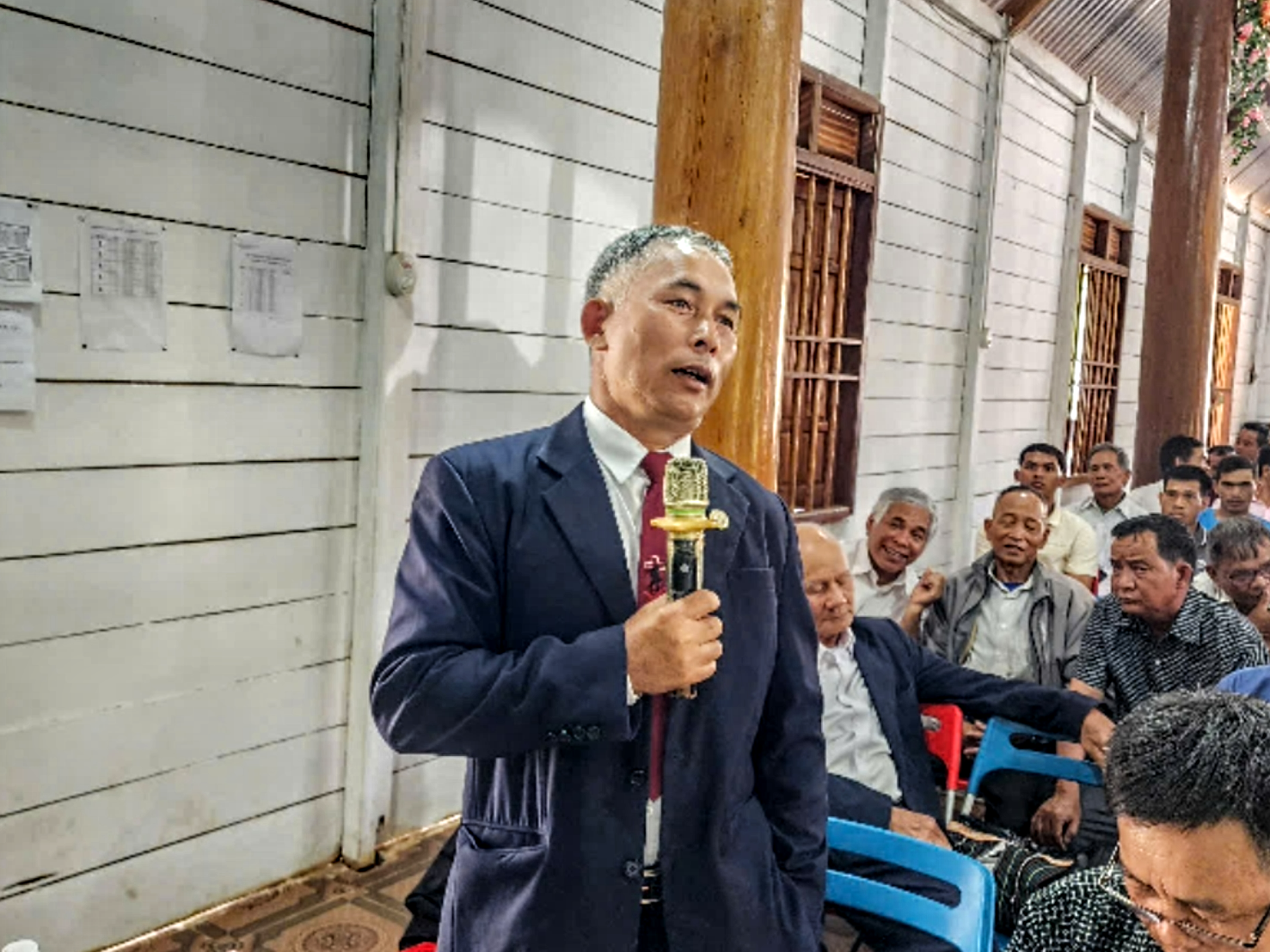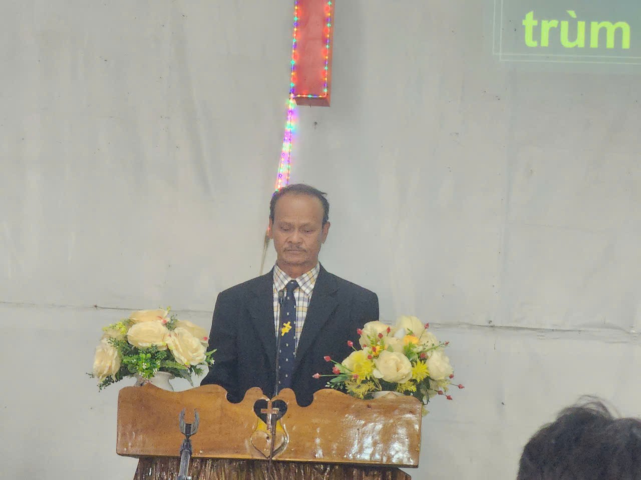 Mục sư A Gưng cầu nguyện dâng lên Chúa về những ơn phước Chúa ban.