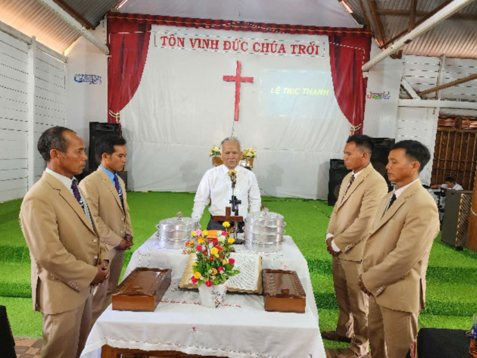 Mục sư Nguyễn Khắc Xuân cử hành Thánh lễ Tiệc Thánh.
