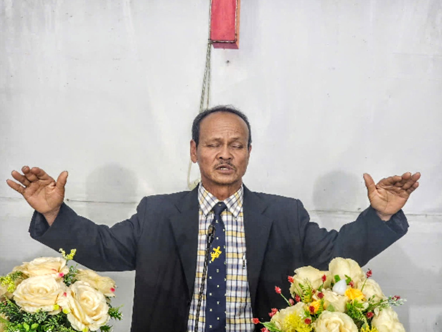 Mục sư A Thông cầu nguyện dâng thì giờ hiệp nguyện lên Ba Ngôi Đức Chúa Trời.