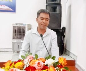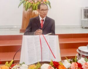 Mục sư Ân Ngọc Phỉ Tuý đại diện cho Ban Xây dựng nhà thờ Hội Thánh Đăk Glei thông qua công việc xây dựng ngôi nhà của Chúa và mời gọi người tham gia trong ban xây dựng