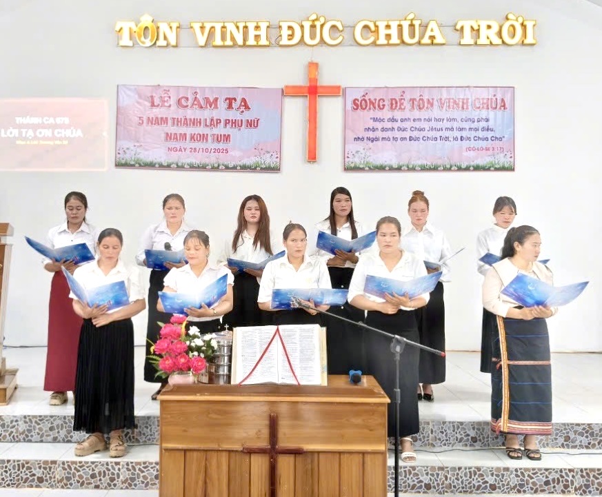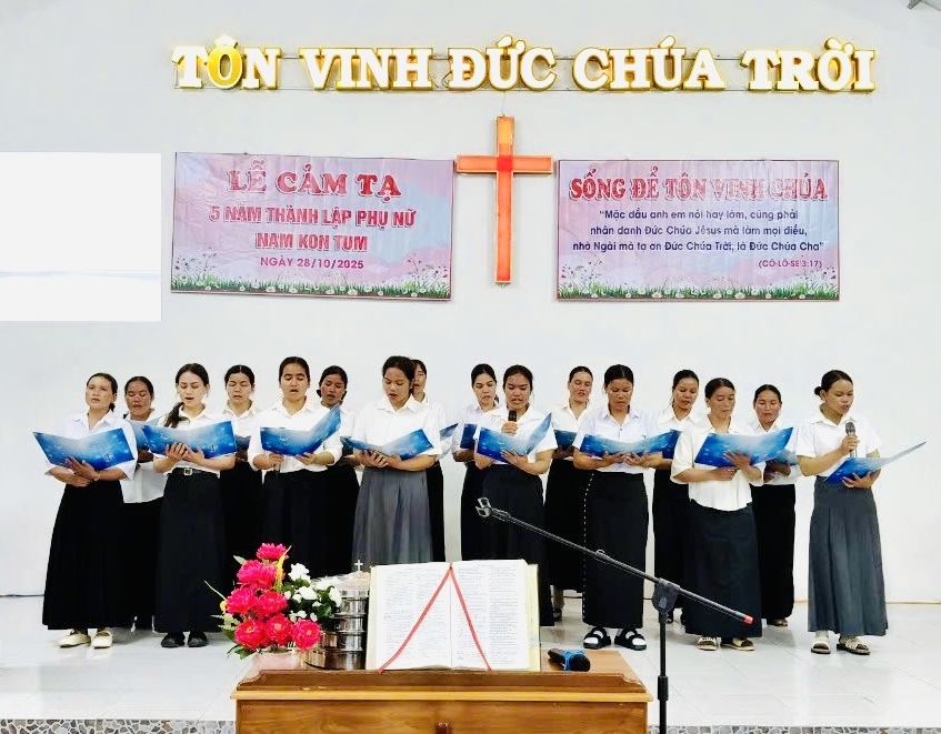 Vào lúc 09h30, ngày 28/10/2025 tại Hội thánh Đăk Chỏah, thôn PLei Trum Đắk Chỏah, phường Đắk Cấm, tỉnh Quảng Ngãi; đã diễn ra Chương Trình Lễ Cảm Tạ do Ban Phụ nữ khu vực Nam Kon Tum tổ chức.