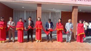 Mục sư Nguyễn Khắc Xuân (QNHT), đại diện Giáo hội Mục sư Nguyễn Quang Đức (Hội trưởng), Mục sư Trần Thanh Hải (Phó Hội trưởng II) và đại diện chính quyền cắt băng khánh thành đền thờ.