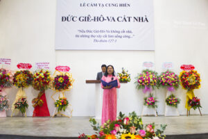 Mục sư Nguyễn Quang Đức (Hội trưởng) thực hiện lễ nghi cung hiến