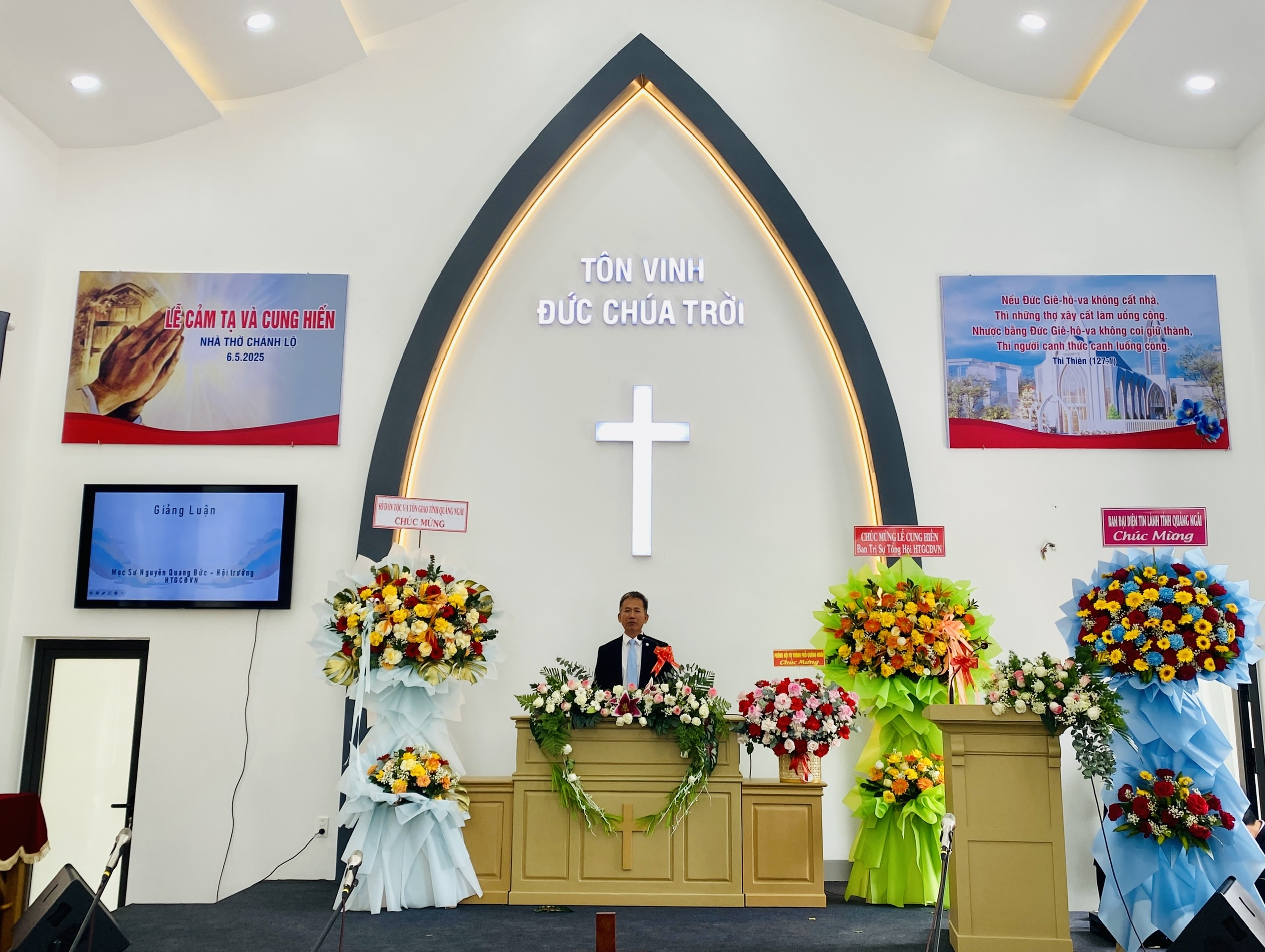 Vào lúc 09 giờ, ngày 06 tháng 05 năm 2025, tại Hội thánh Chánh Lộ, 119A Võ Thị Sáu, phường Chánh Lộ, thành phố Quảng Ngãi, tỉnh Quảng Ngãi đã diễn ra chương trình Lễ Cảm Tạ và Cung Hiến Nhà Thờ Chánh Lộ.